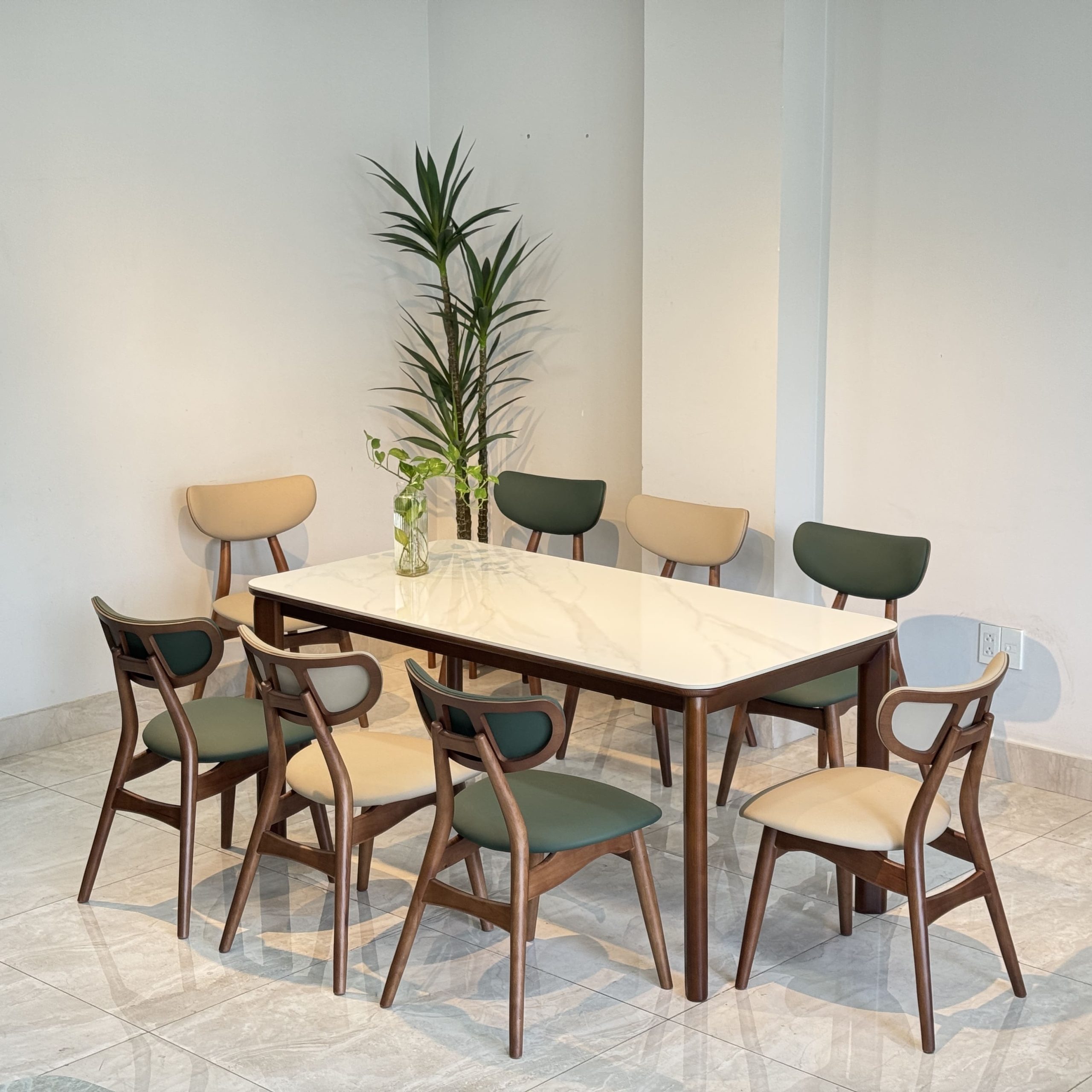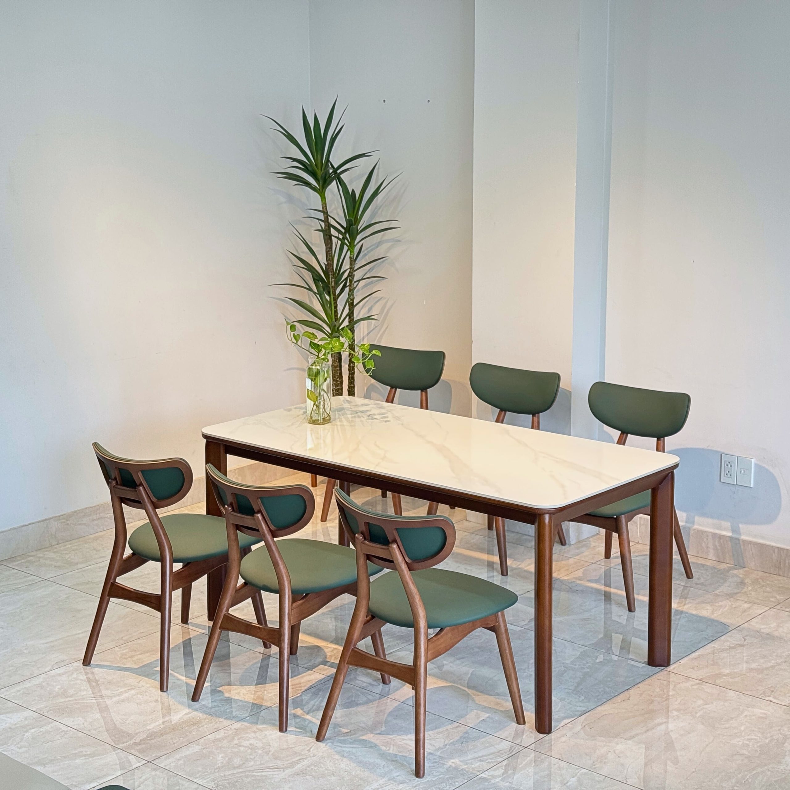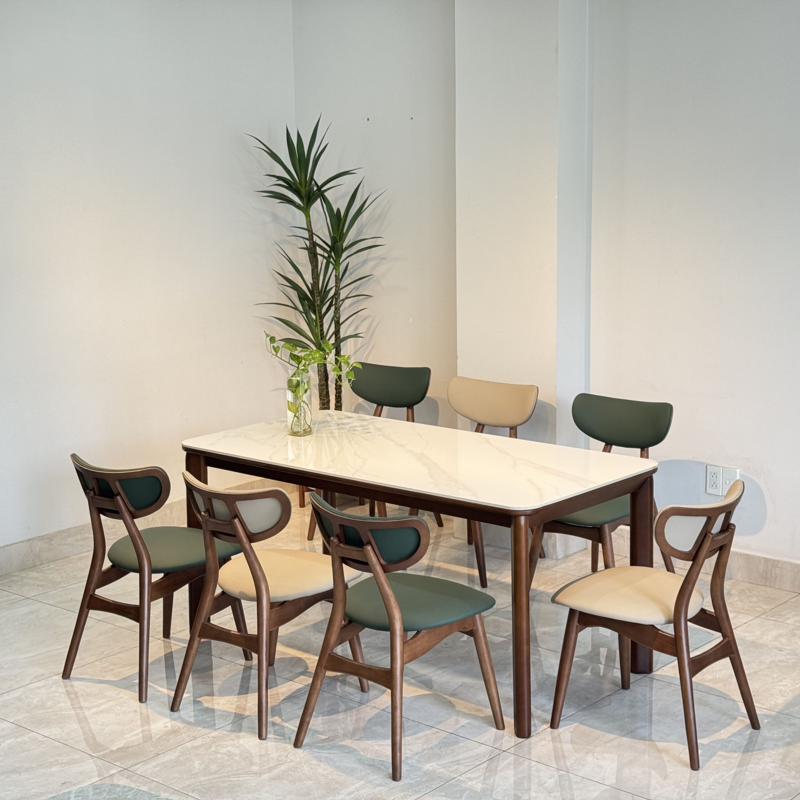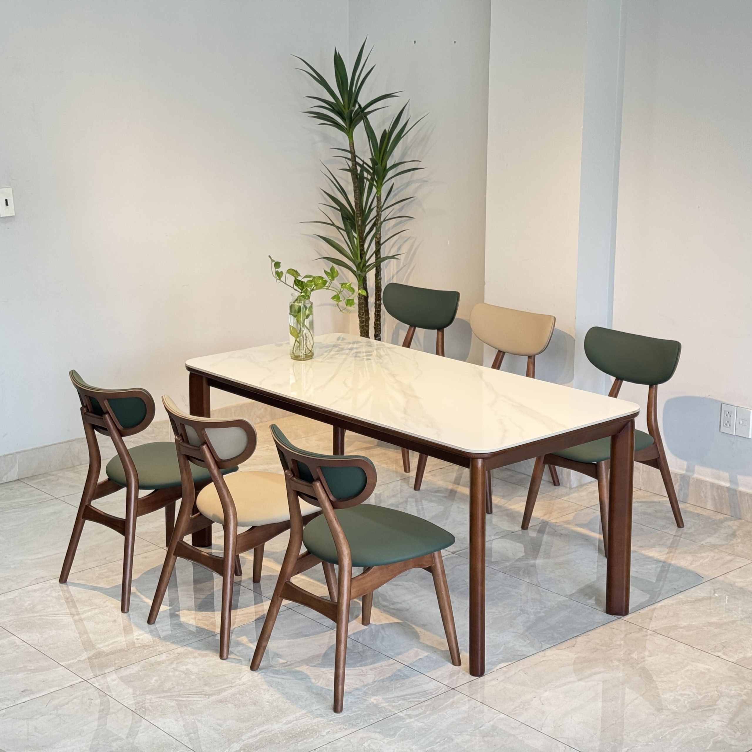Bộ bàn ăn mặt ceramic cao cấp kết hợp ghế TADI gỗ tự nhiên – Giải pháp nội thất tinh gọn & bền lâu