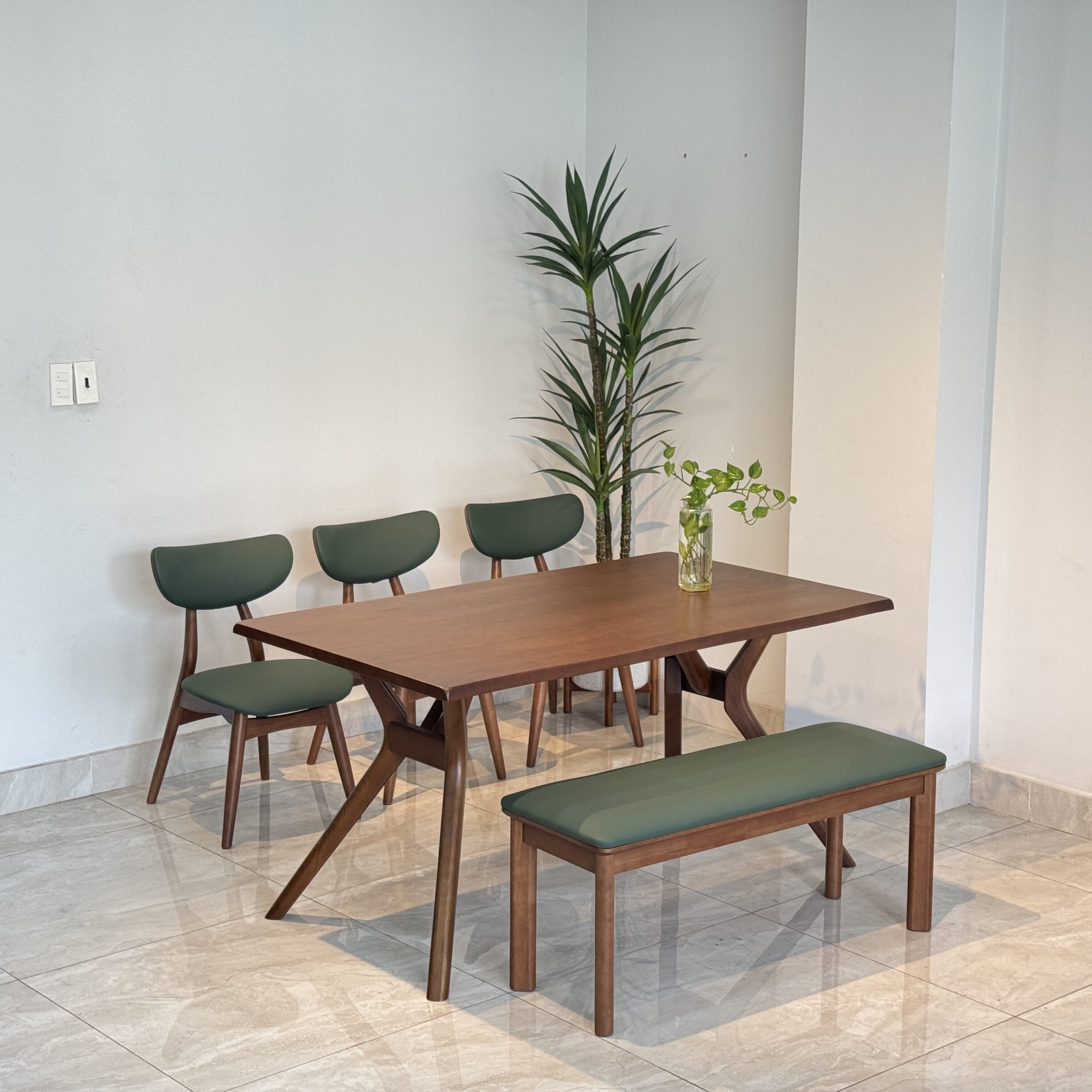 - Kết cấu bền vững – bảo trì thấp: không cần đánh bóng mặt bàn, không lo bong tróc da ghế.