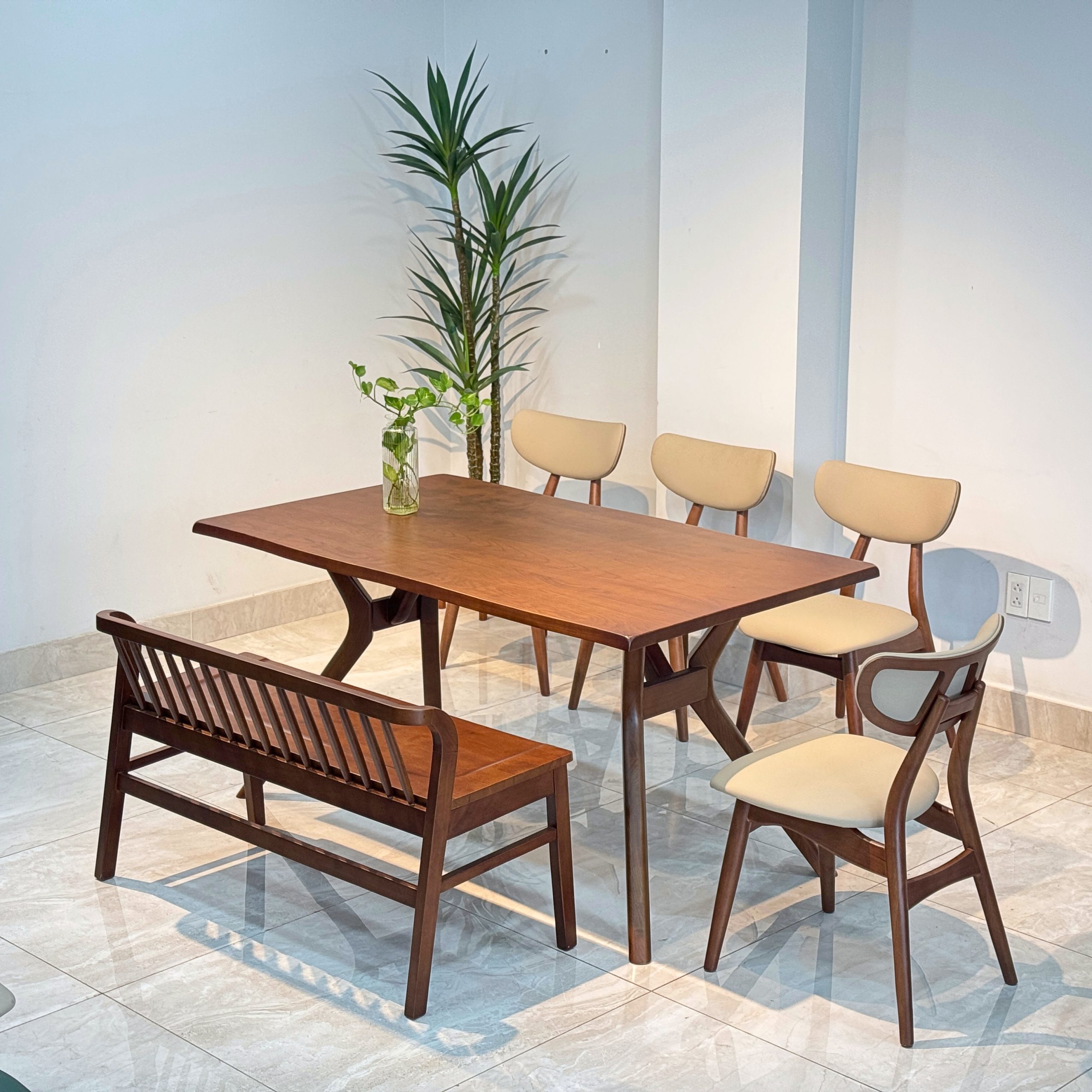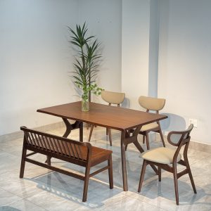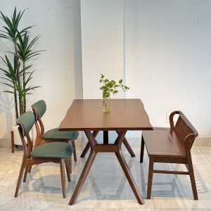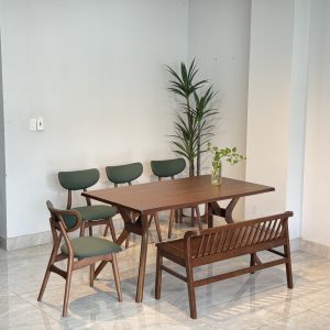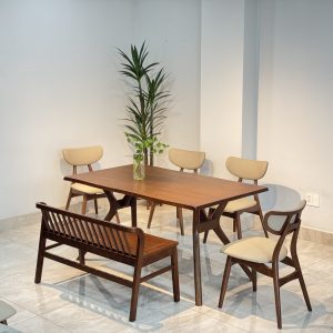 Review Bộ Bàn Ăn Gỗ TADI 5 Ghế Phối Bench Xuân Hè