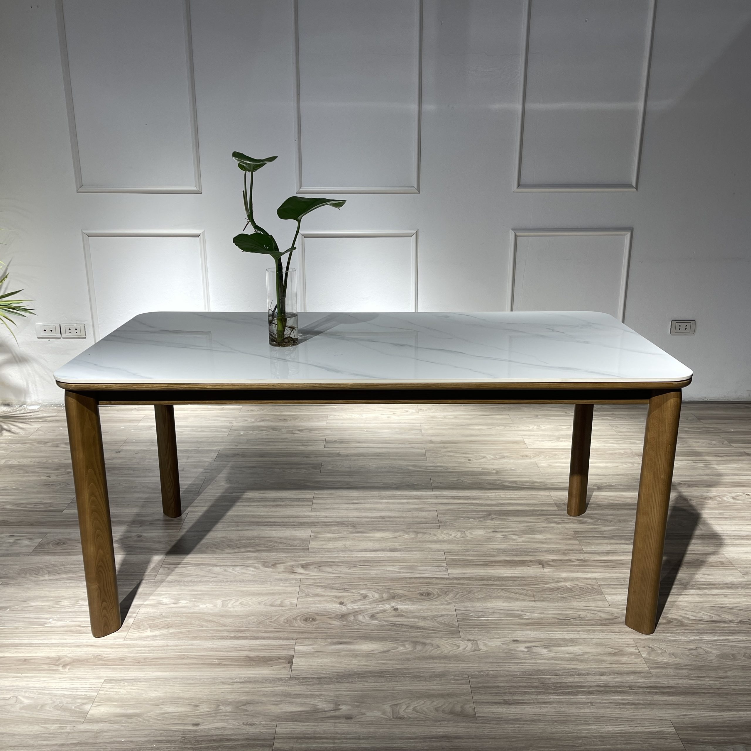 Bàn dài 1595mm, phù hợp với gia đình đông thành viên hoặc những buổi họp mặt thân mật. Kết cấu bố trí ghế khoa học, giúp bữa ăn thêm thoải mái và gần gũi.