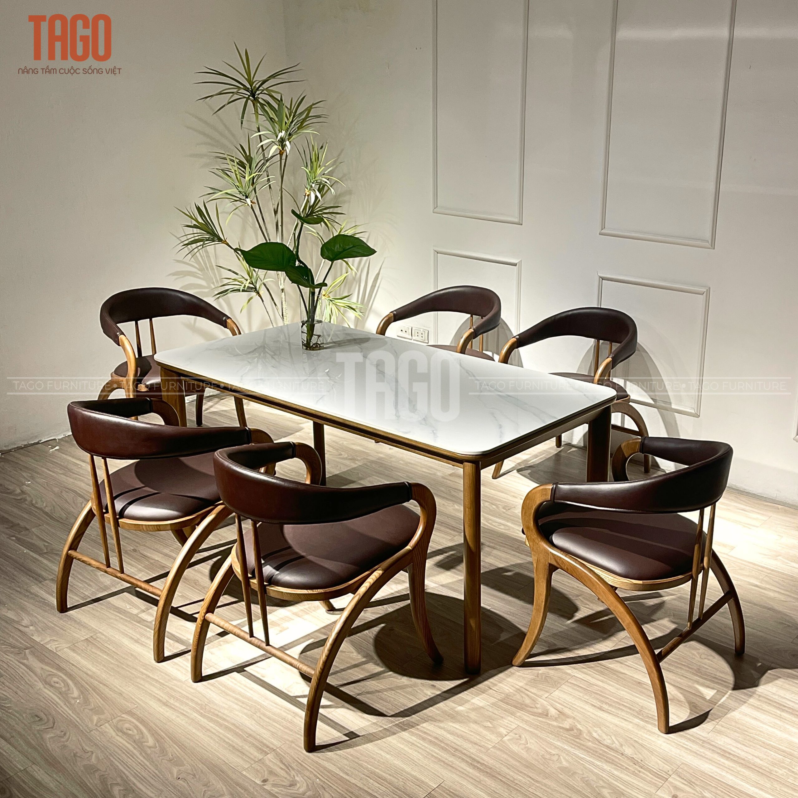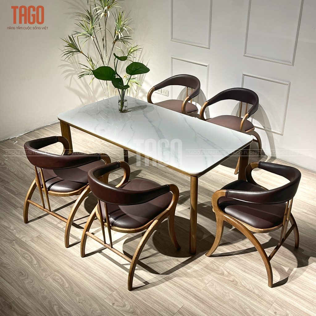 Bàn ghế TAGO mang đậm phong cách Bắc Âu (Scandivian) từ design đến quy cách đóng gói.Xuất xứ TAGO Furniture Chất liệu gỗ Gỗ sồi – mặt đá ceramic Chất liệu nệm Da PU cao cấp Vật liệu sơn Sơn NC ( sơn được sử dụng trong ngành đồ chơi trẻ em). Màu sắc Antic (Rêu tây ánh vàng) Sản xuất theo tiêu chuẩn Xuất Châu Âu Quy cách đóng gói Thùng Carton 5 lớp Bàn: 3 kiện (1 kiện khung, 1 kiện chân, 1 kiện mặt đá)