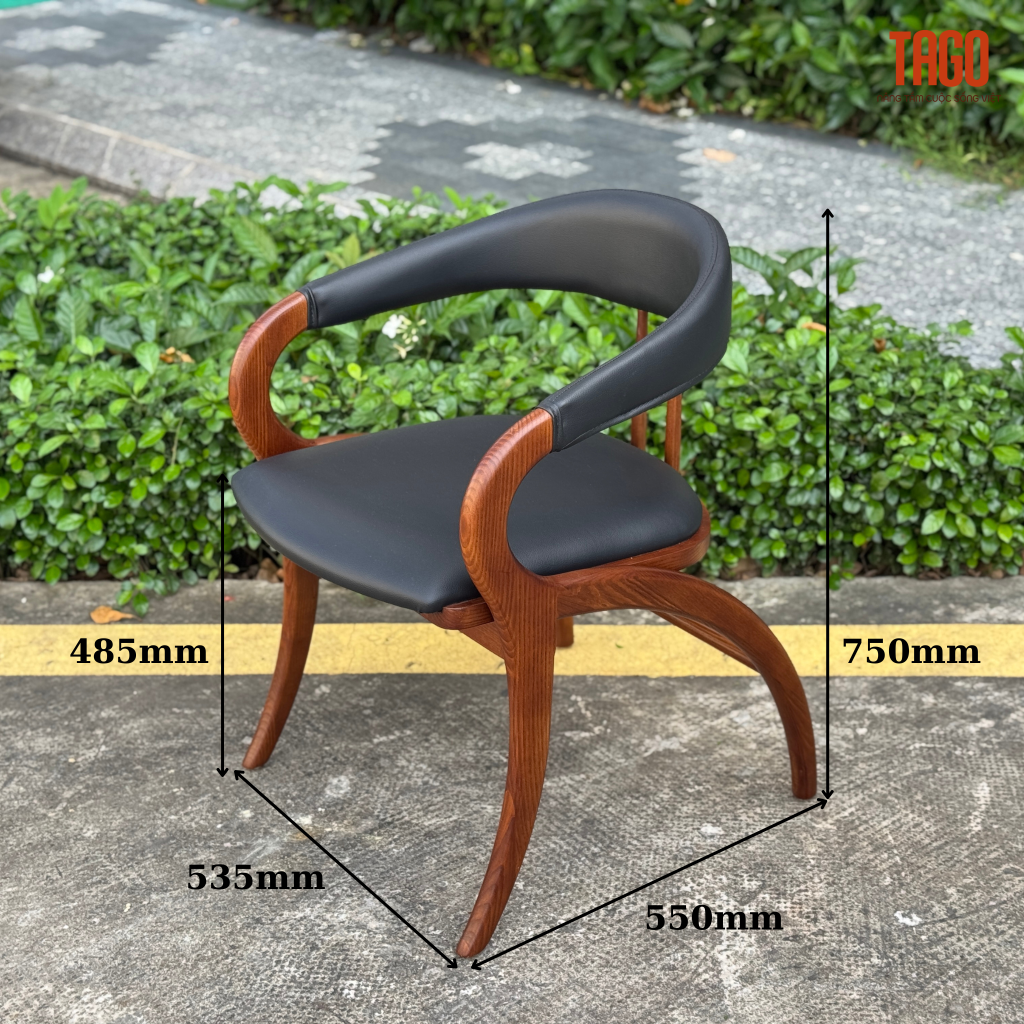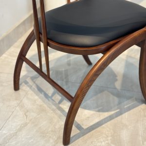 Ghế được làm từ gỗ sồi tự nhiên, nổi bật với dáng lưng uốn cong ôm trọn cơ thể, tạo cảm giác thoải mái khi ngồi lâu. Mặt ghế bọc nệm da cao cấp, dễ vệ sinh và bền màu theo thời gian, mang lại vẻ đẹp hiện đại và sang trọng cho bộ bàn ăn.