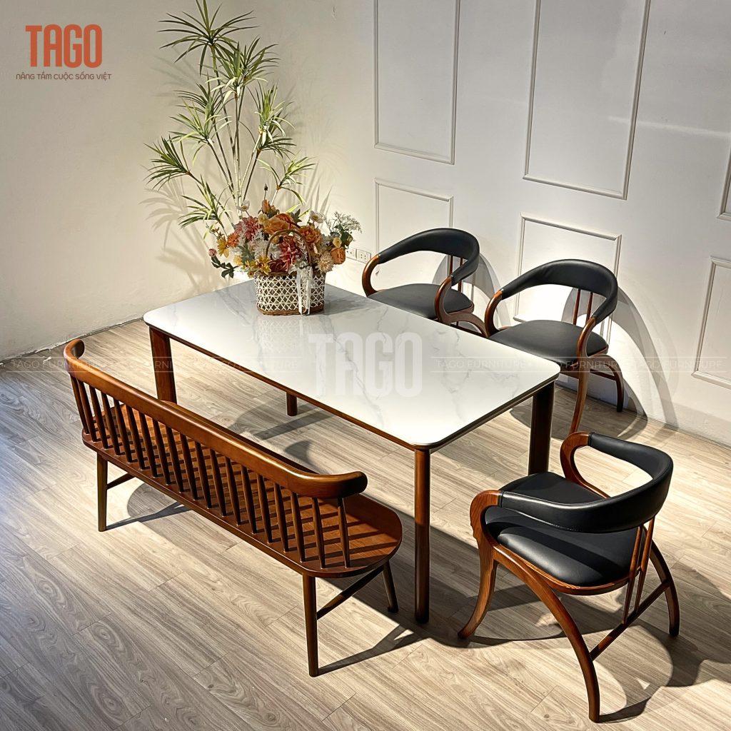 Review Bộ Bàn Ăn Kiva 1595mm phối bench 1m3 – BKV3G1595