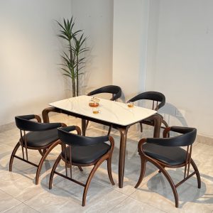 BỘ BÀN ĂN MẶT ĐÁ CERAMIC CAO CẤP KẾT HỢP GHẾ KIVA SỒI TỰ NHIÊN – GIẢI PHÁP NỘI THẤT SANG TRỌNG & LÂU BỀN