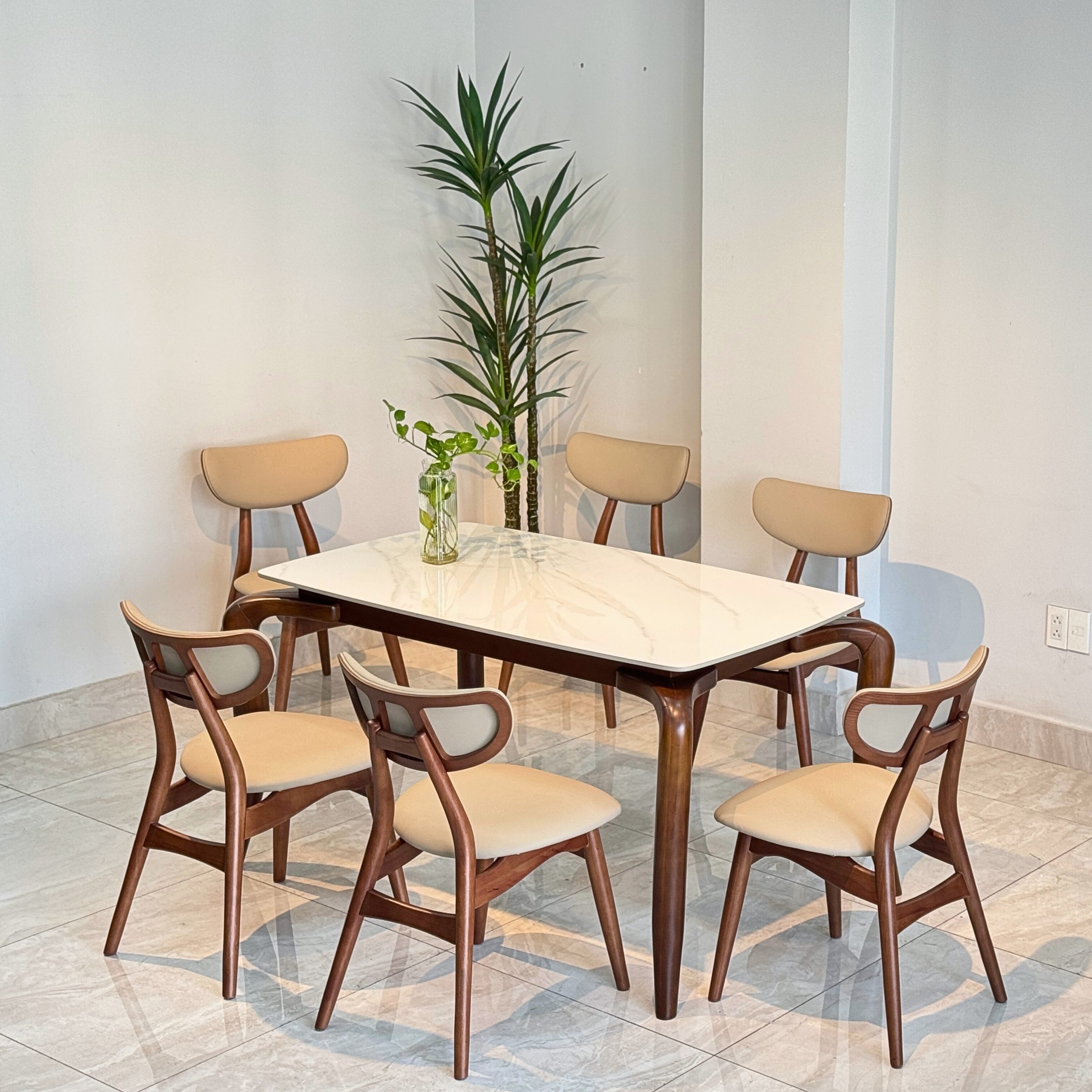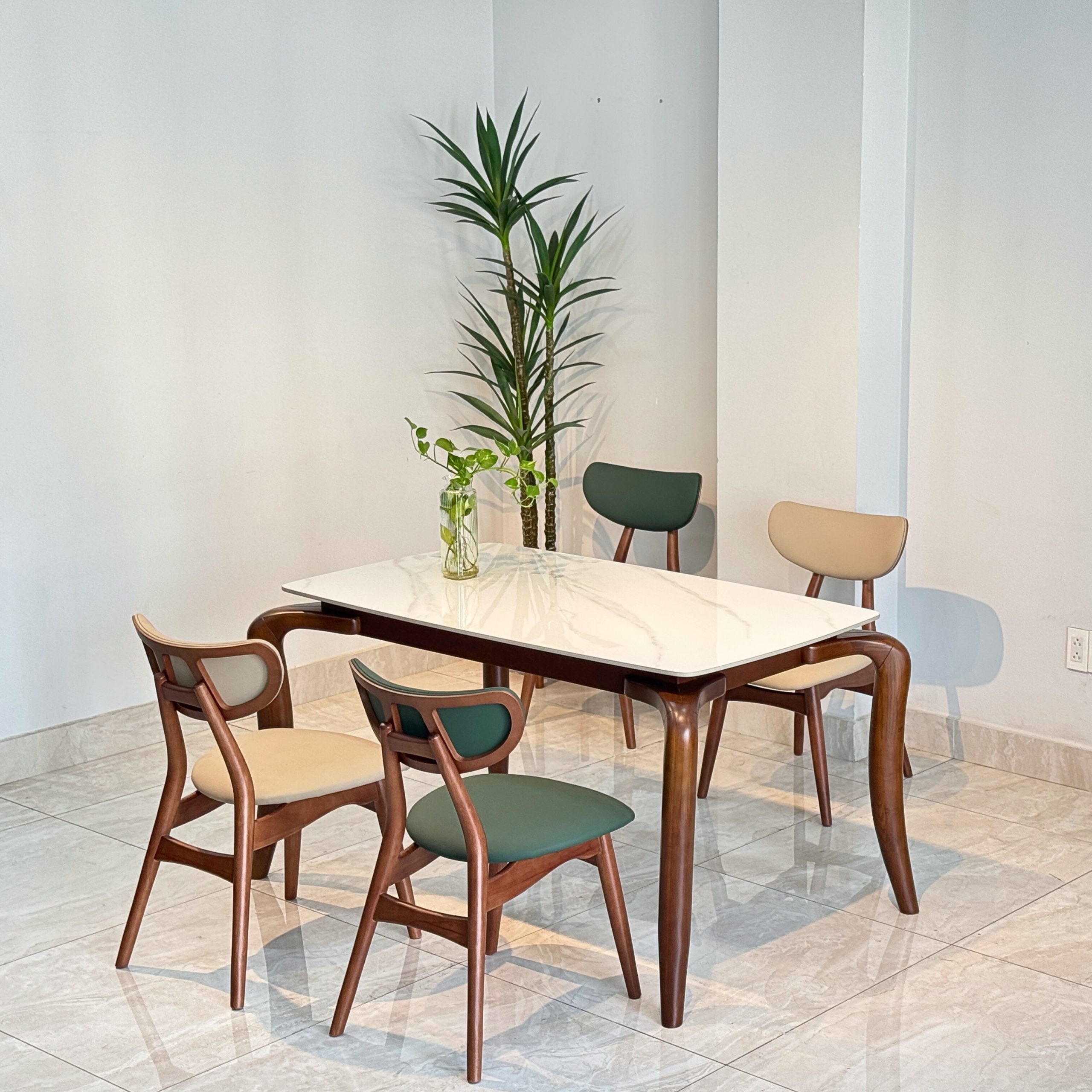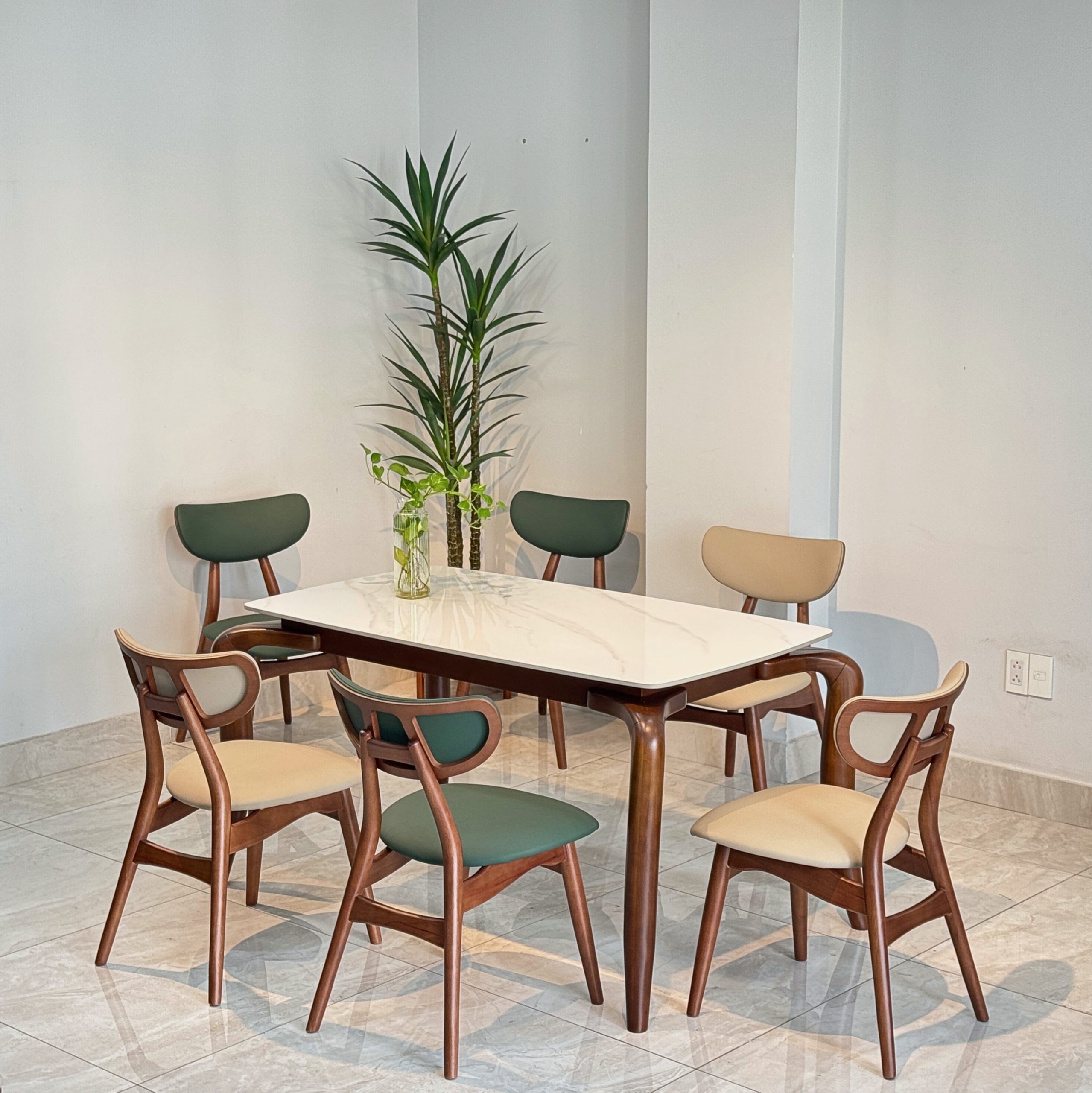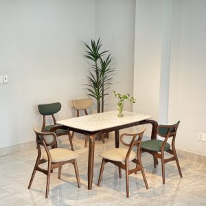 Bộ bàn ăn mặt ceramic cao cấp kết hợp ghế TADI gỗ tự nhiên – Giải pháp nội thất tinh gọn & bền lâu