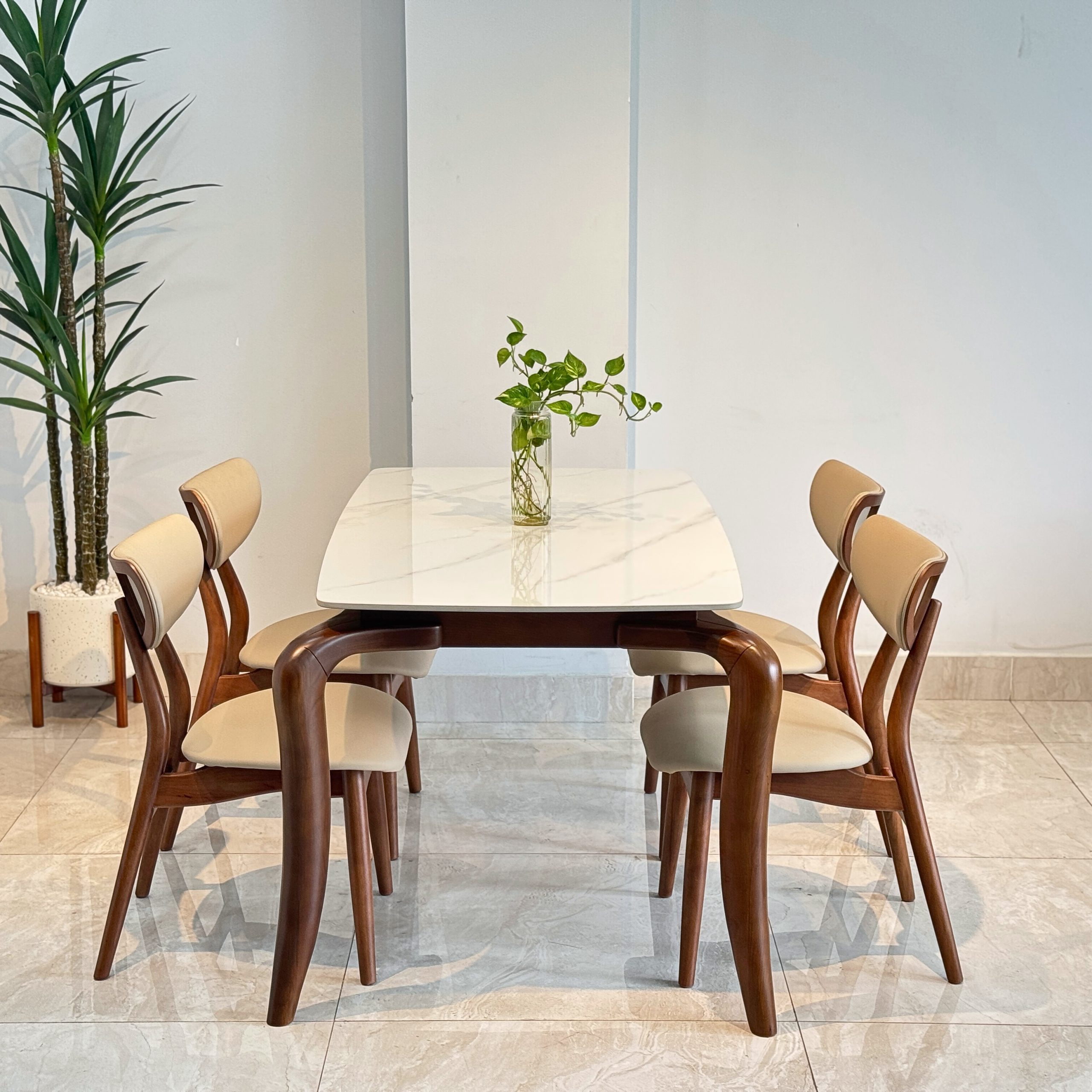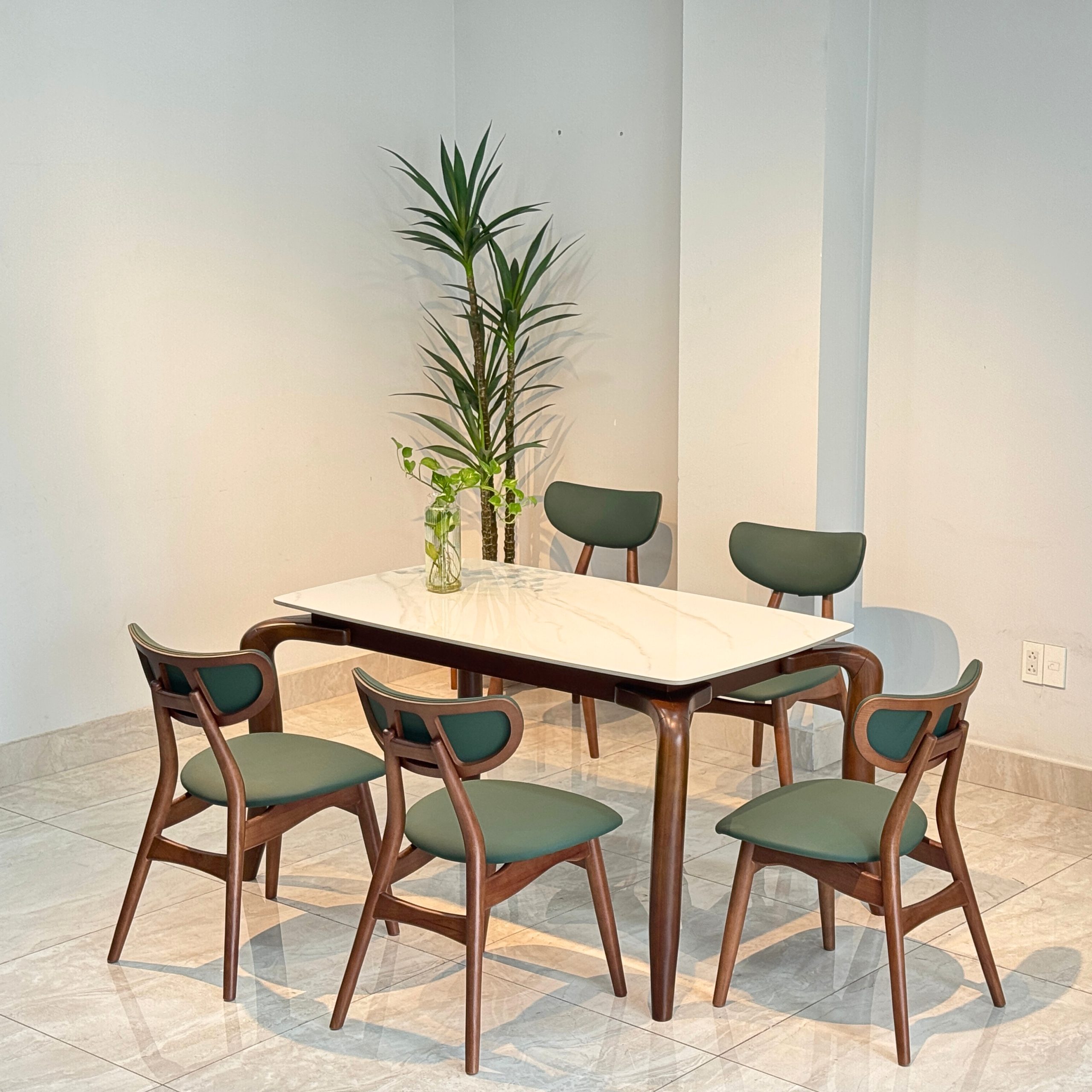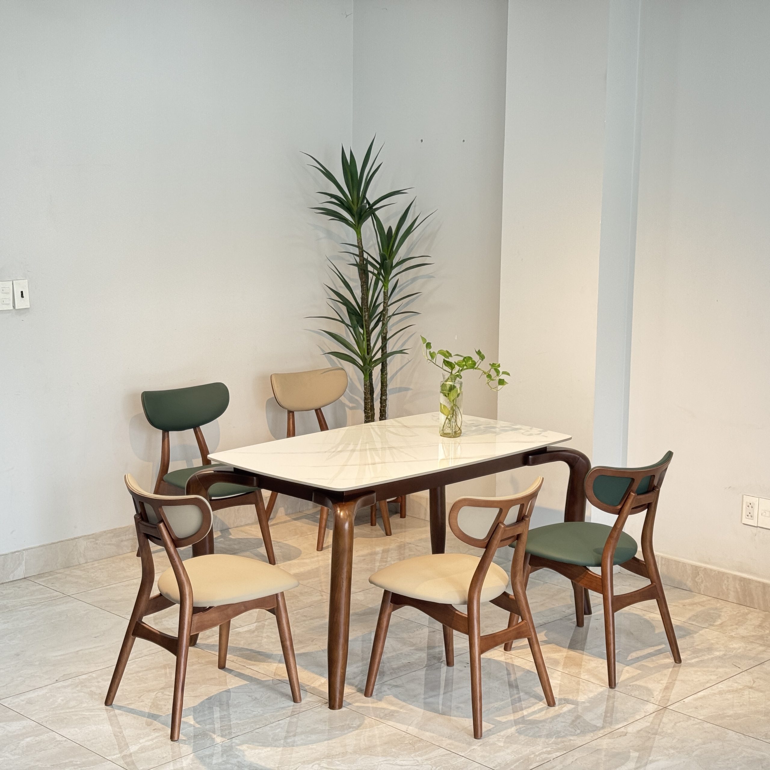 Bộ bàn ăn mặt ceramic cao cấp kết hợp ghế TADI gỗ tự nhiên – Giải pháp nội thất tinh gọn & bền lâu
