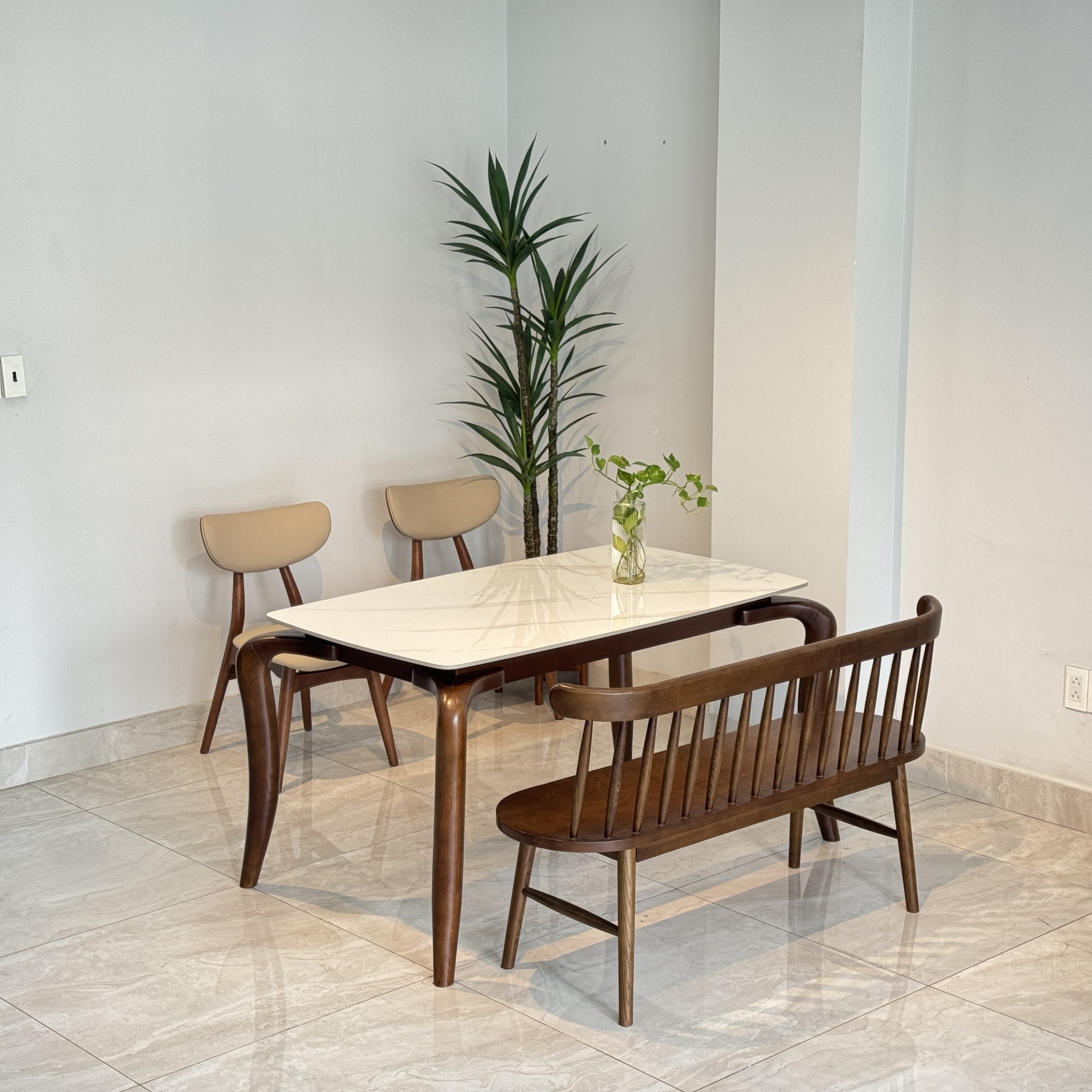 | Chất liệu gỗ | Bàn, Bench gỗ sồi- mặt đá ceramic, Ghế gỗ cao su |