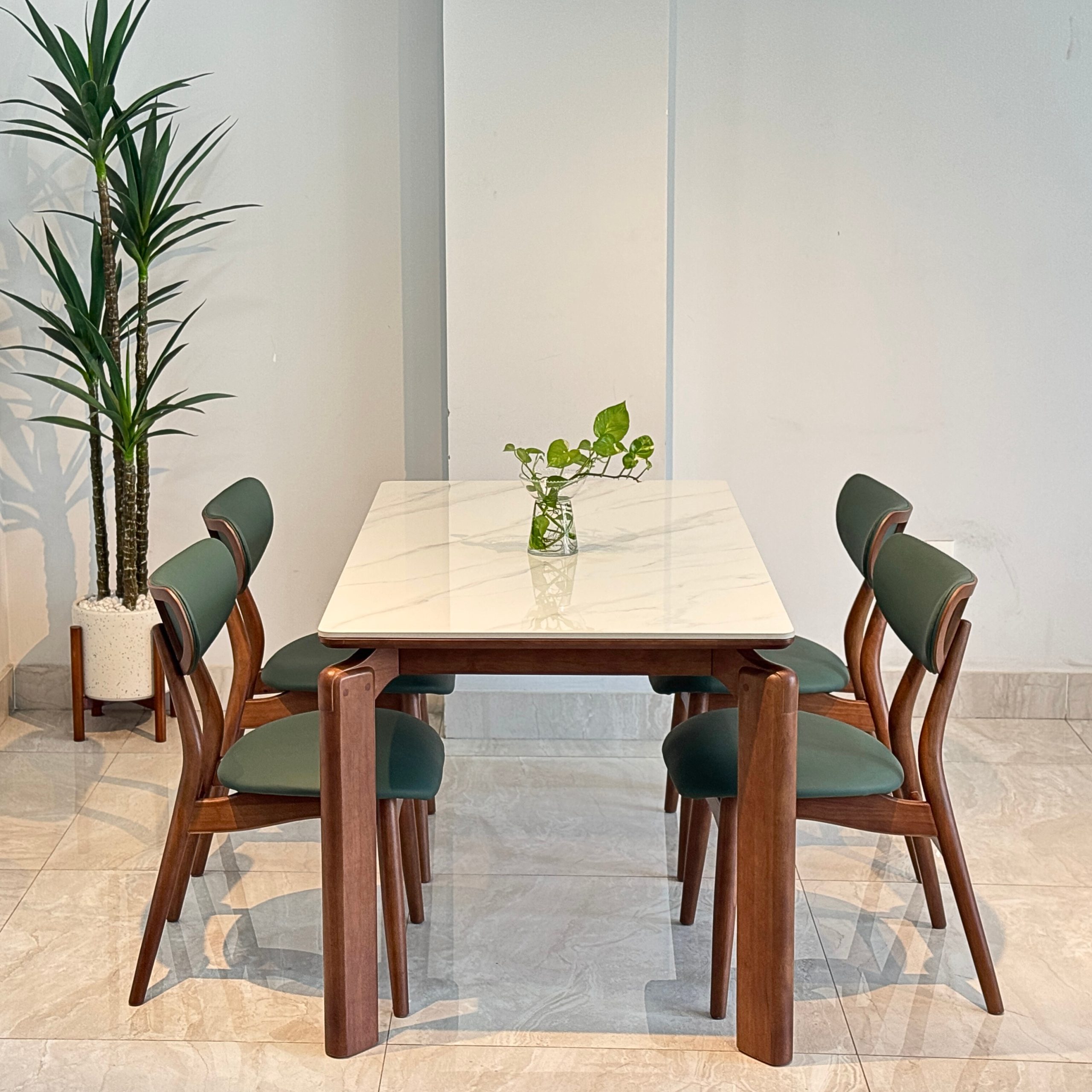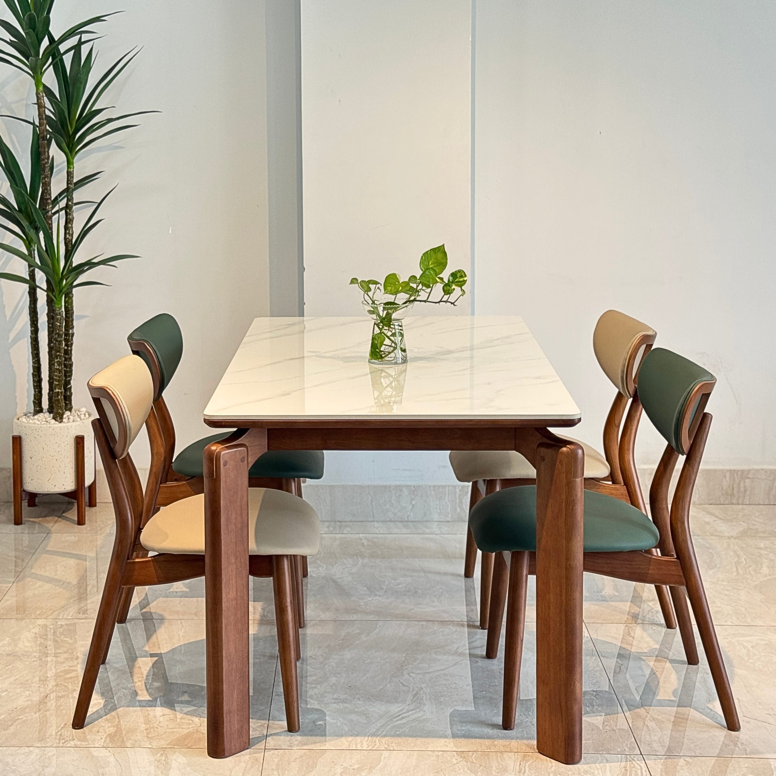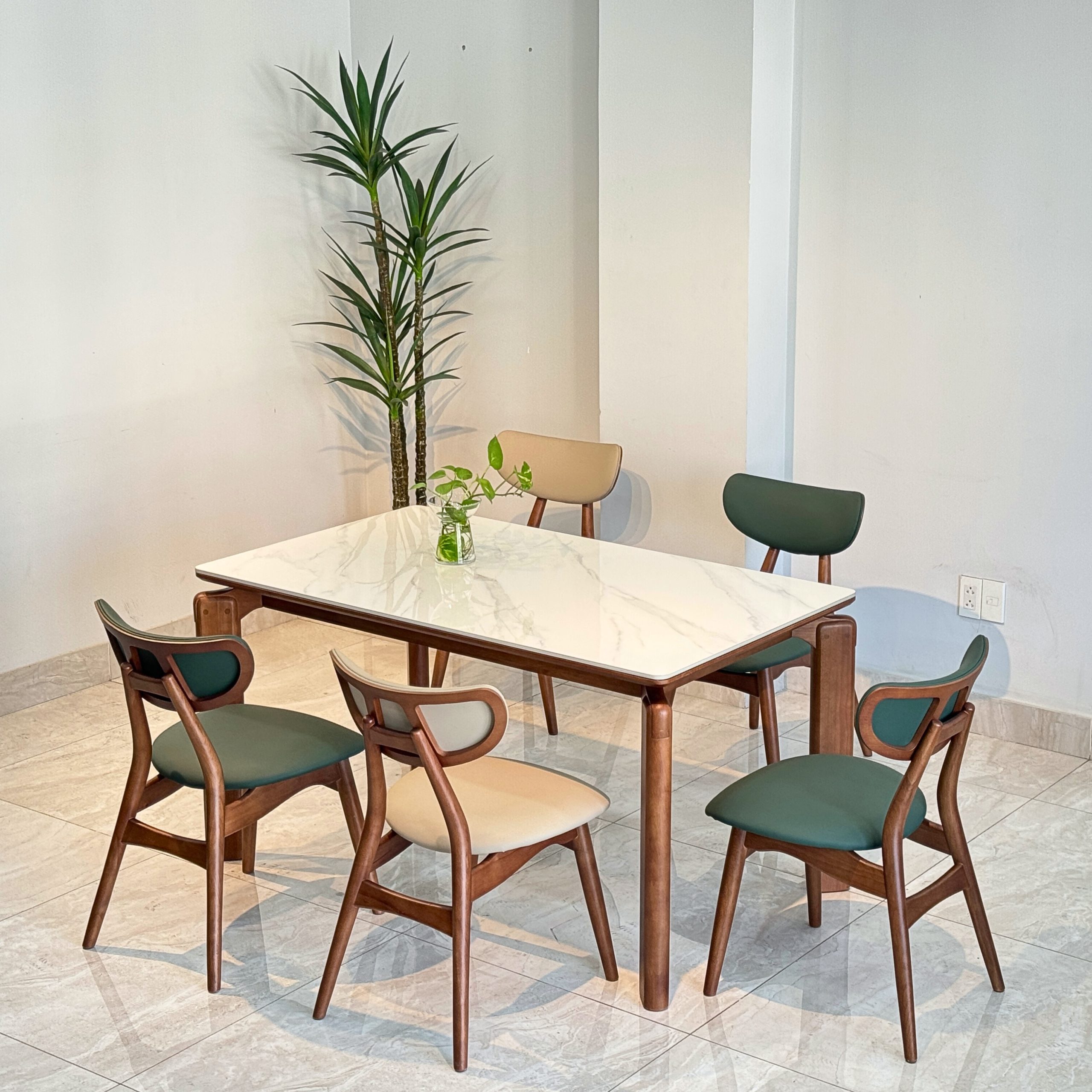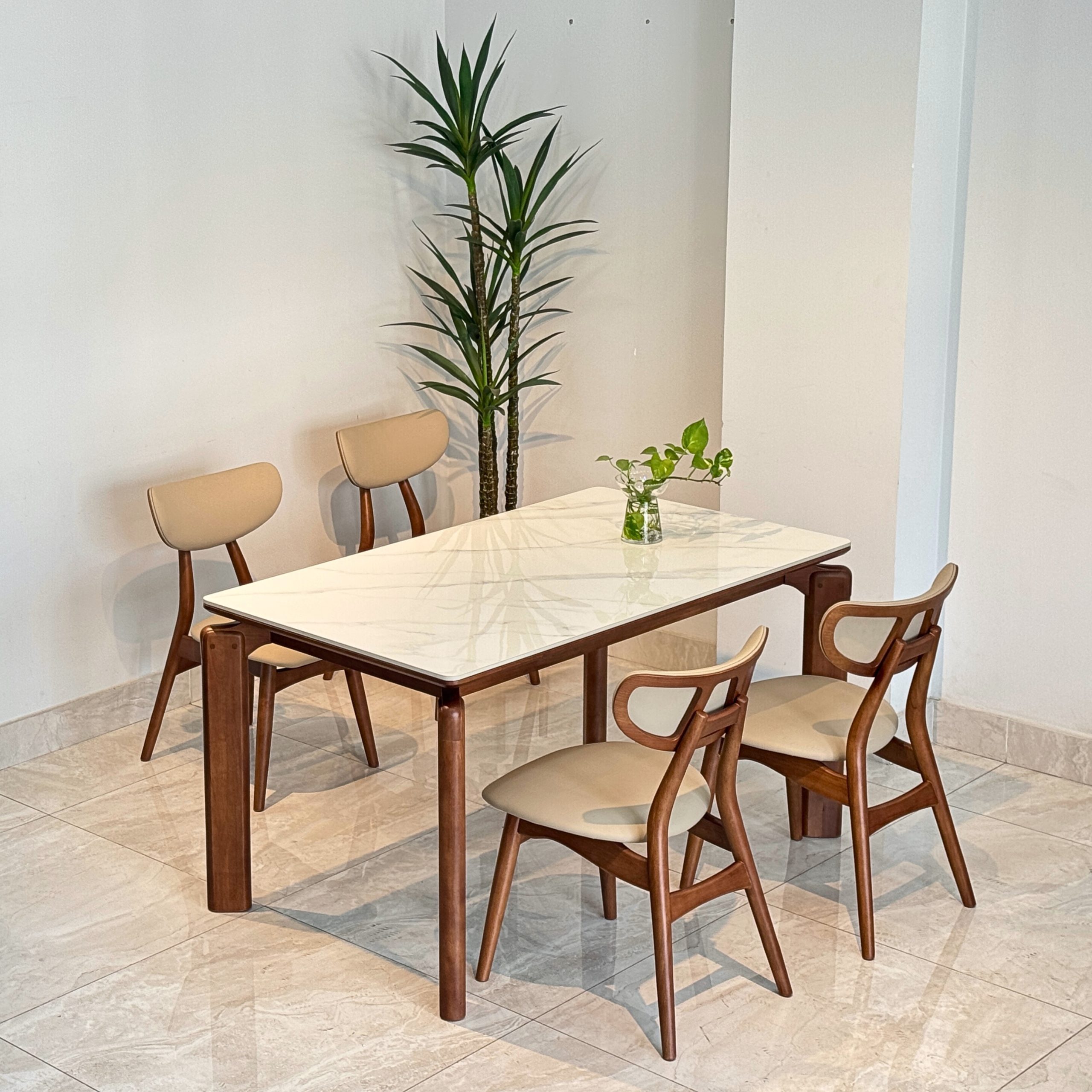 Bộ bàn ăn mặt ceramic cao cấp kết hợp ghế TADI gỗ tự nhiên – Giải pháp nội thất tinh gọn & bền lâu