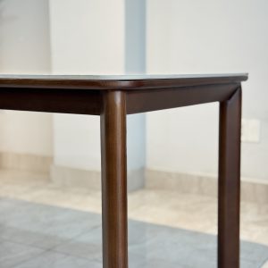 Khung bàn được chế tác từ gỗ sồi tự nhiên, tông màu nâu ấm áp, mang lại sự vững chãi và độ bền cao. Gỗ được xử lý sấy đạt độ ẩm tiêu chuẩn 10–12%, hạn chế cong vênh, mối mọt trong điều kiện khí hậu nhiệt đới. đồng thời giữ được vẻ đẹp tự nhiên và hài hòa trong không gian sống.
