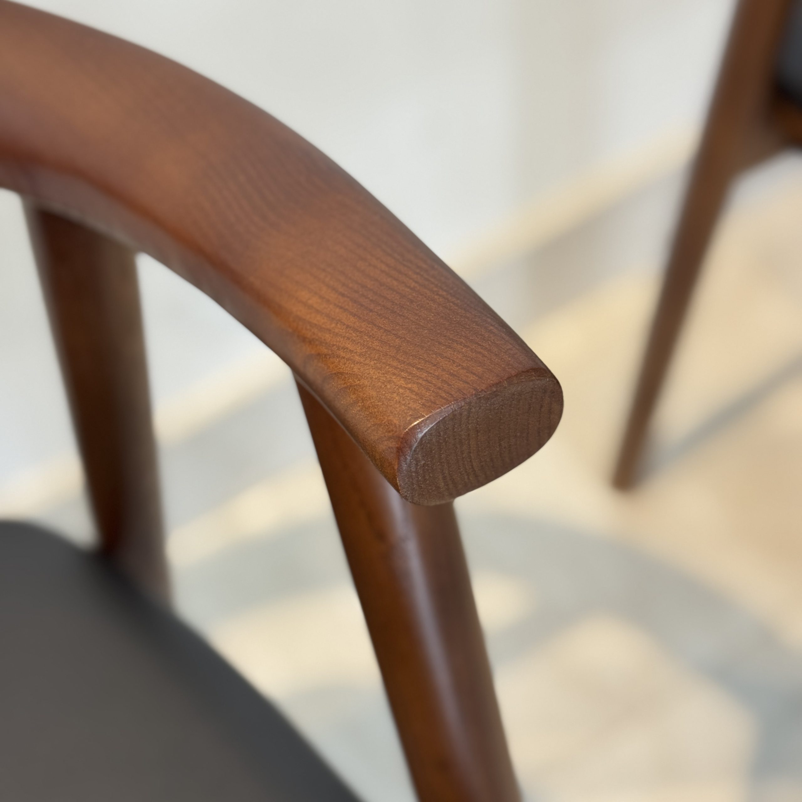 • Khung ghế làm từ gỗ sồi tự nhiên, sử dụng công nghệ để tạo form cong liền khối – đảm bảo độ chắc chắn và tư thế ngồi ôm lưng dễ chịu.