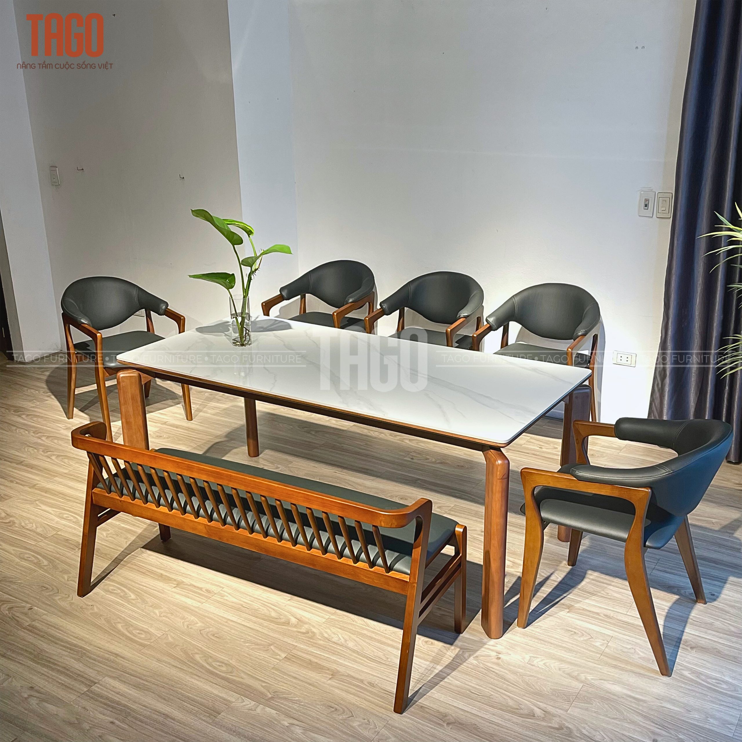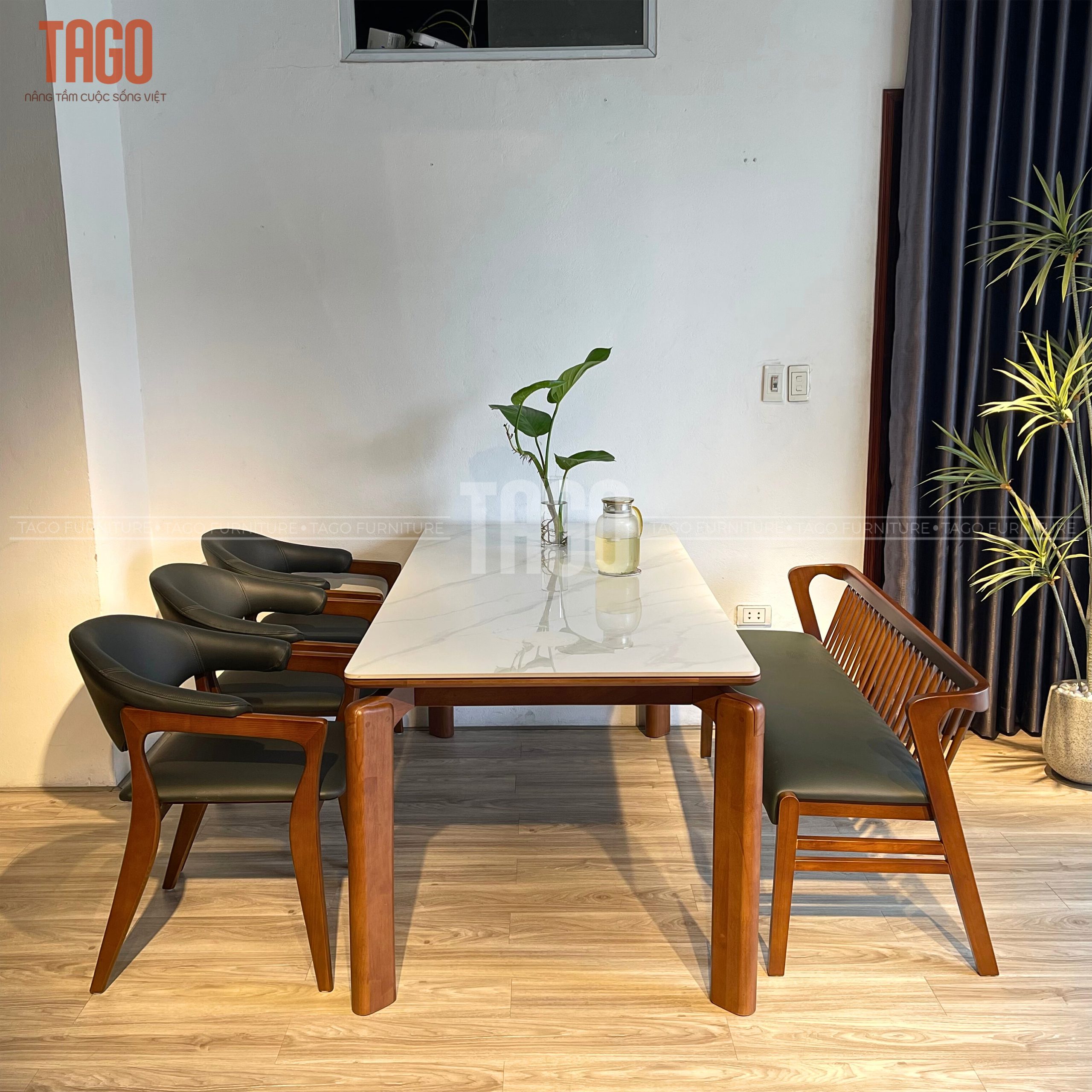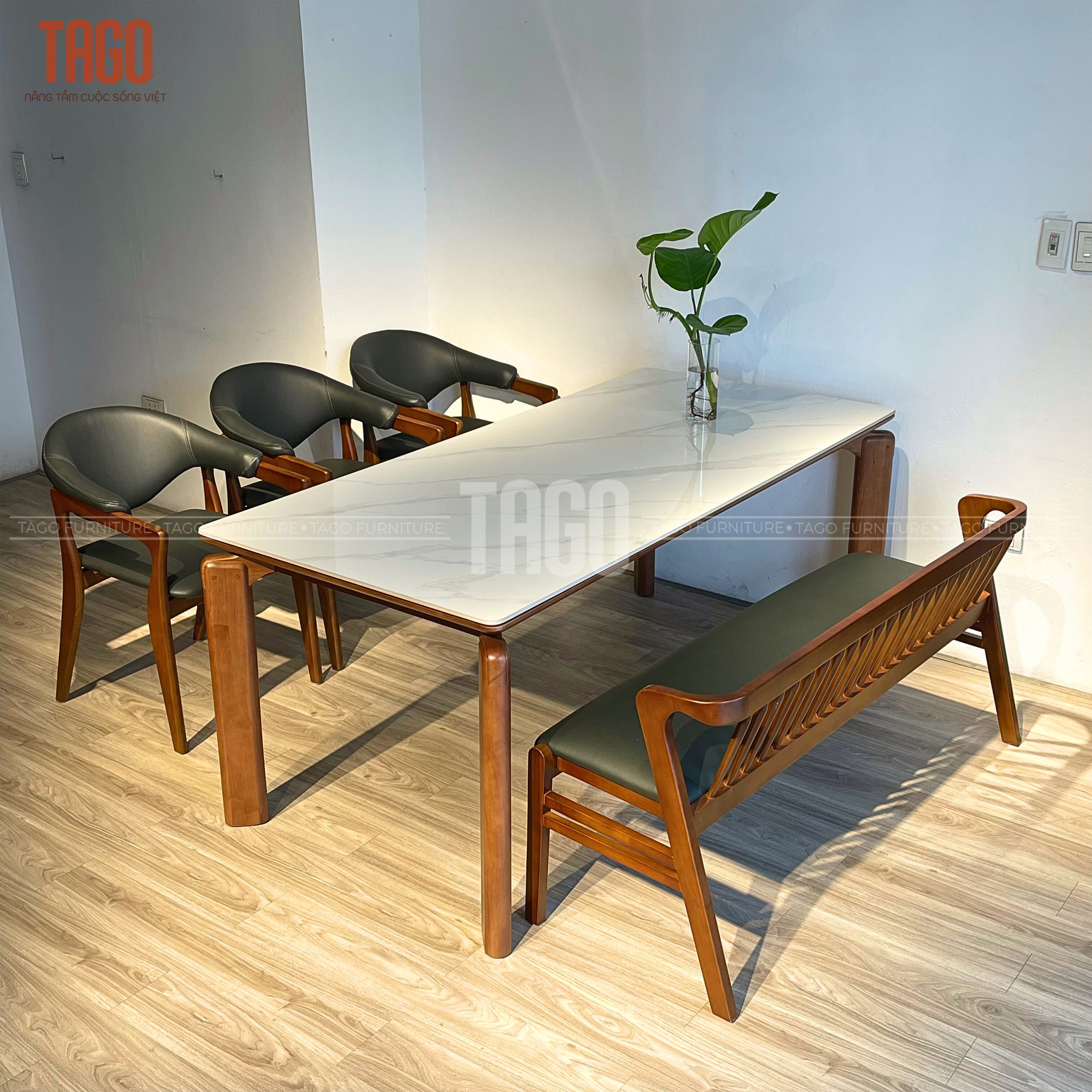 Xuất xứ TAGO Furniture Chất liệu gỗ Ghế Gỗ sồi – mặt bàn đá ceramic