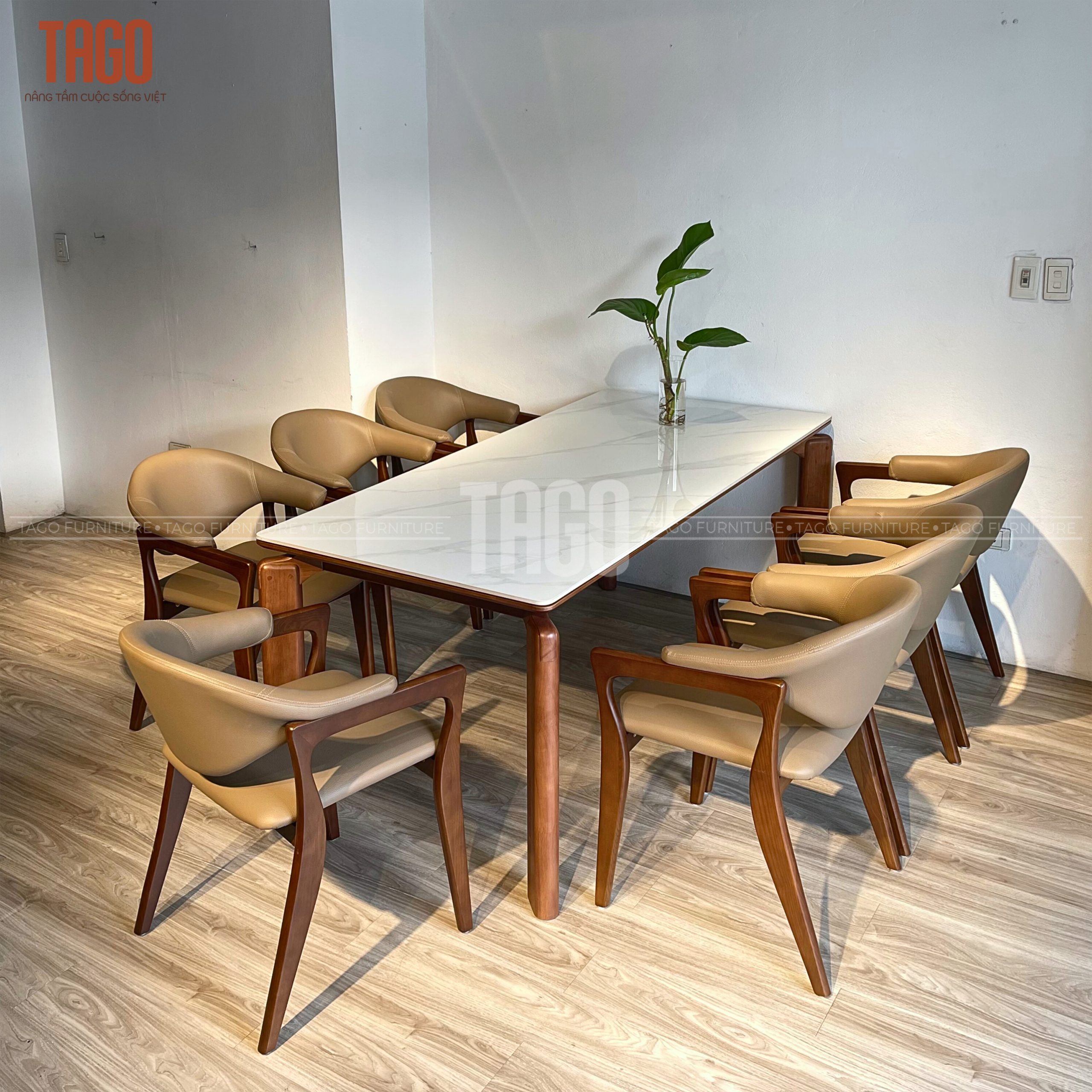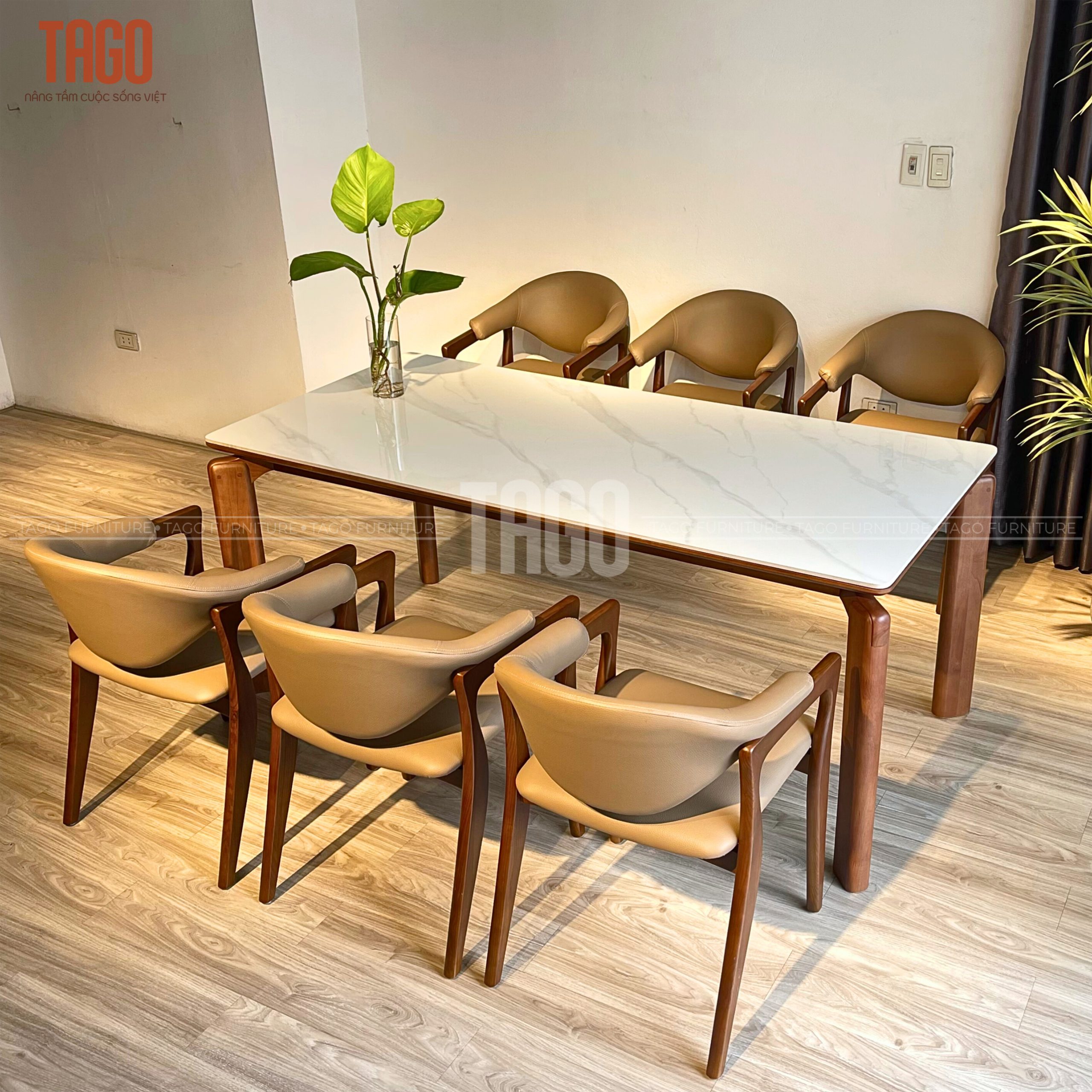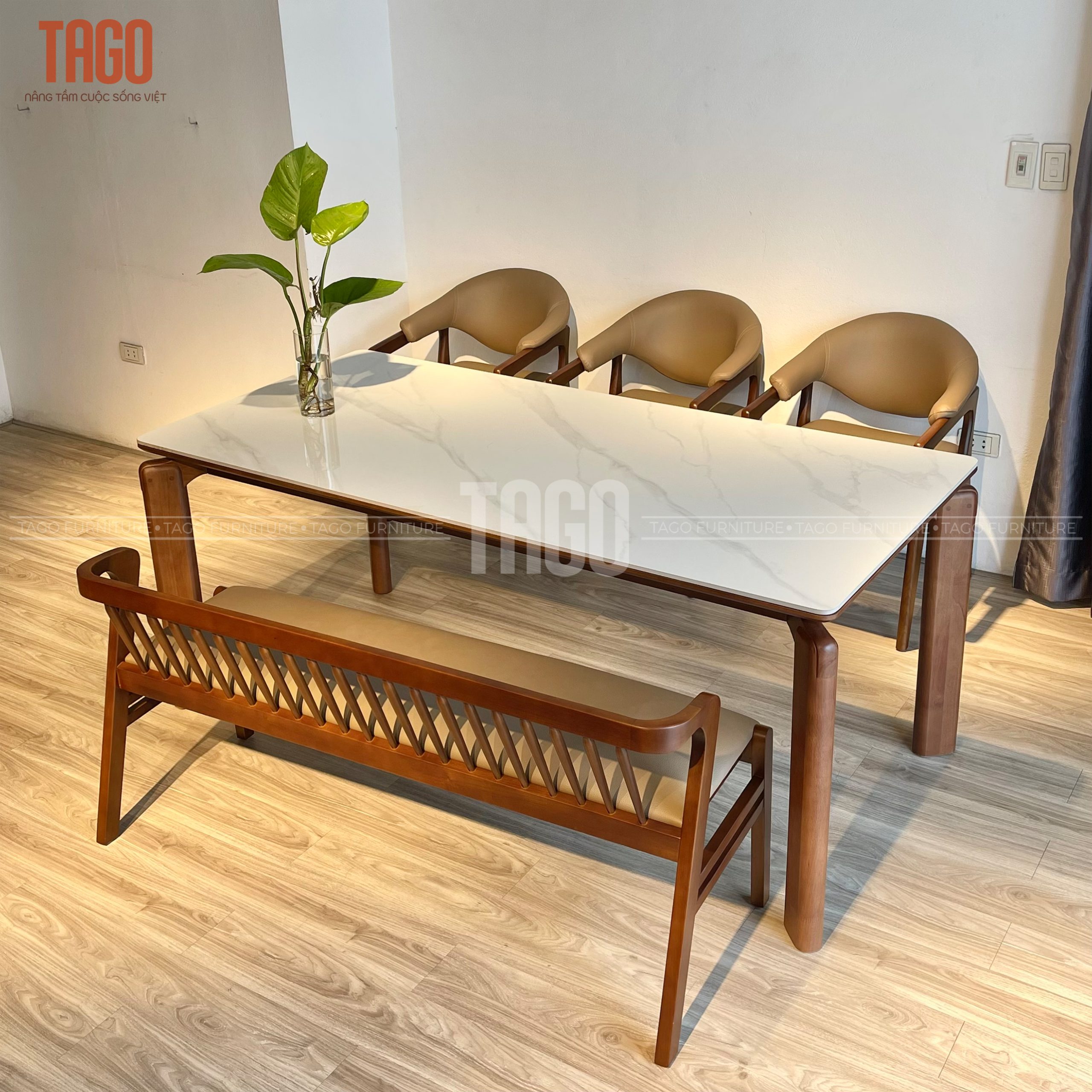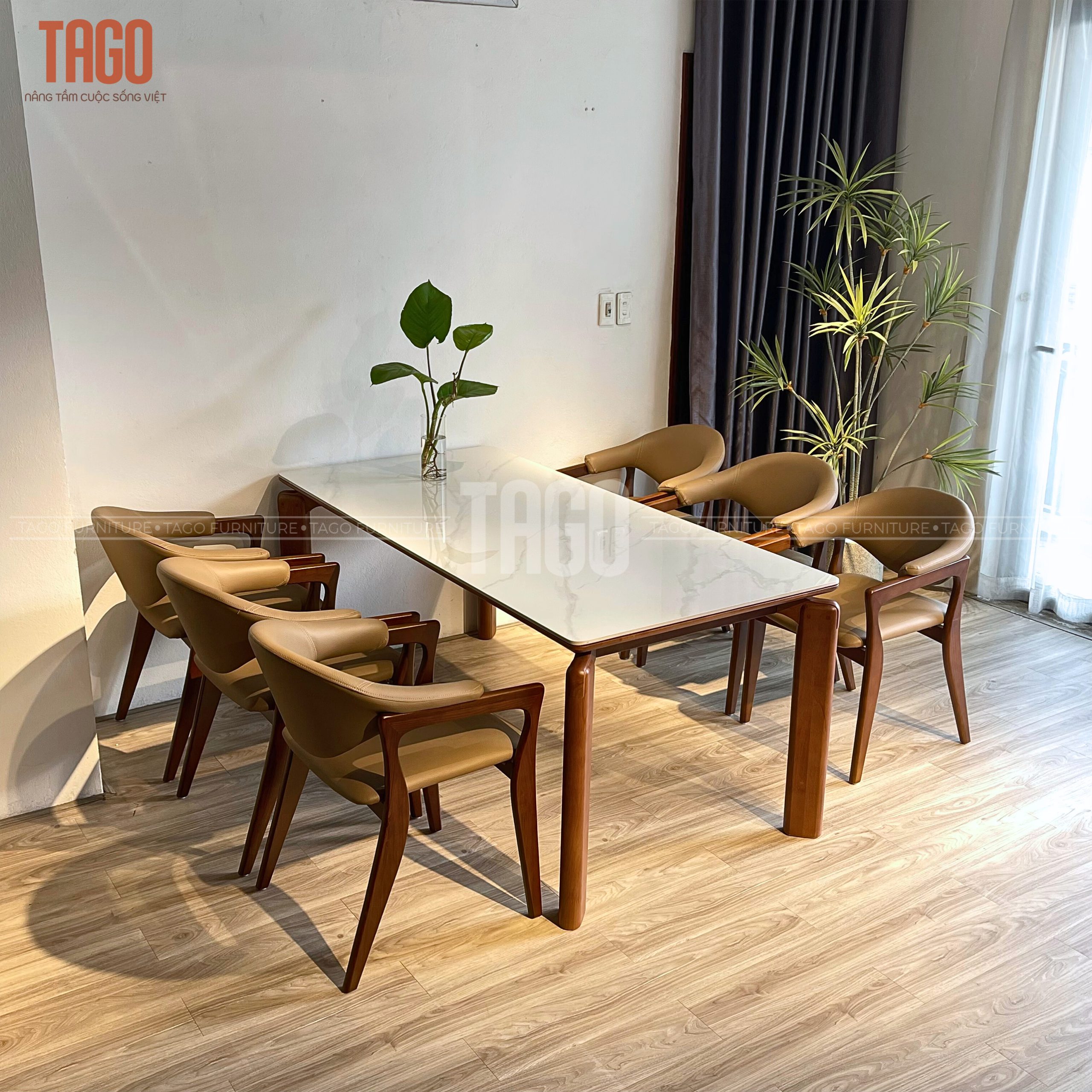 Xuất xứ TAGO Furniture Chất liệu gỗ Ghế Gỗ sồi – mặt bàn đá ceramic