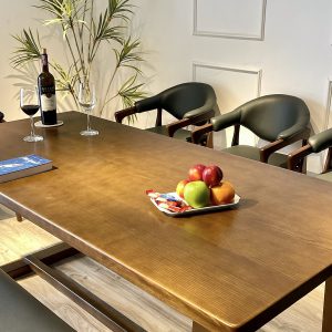 - Kết cấu bền vững – bảo trì thấp: không cần đánh bóng mặt bàn, không lo bong tróc da ghế.
