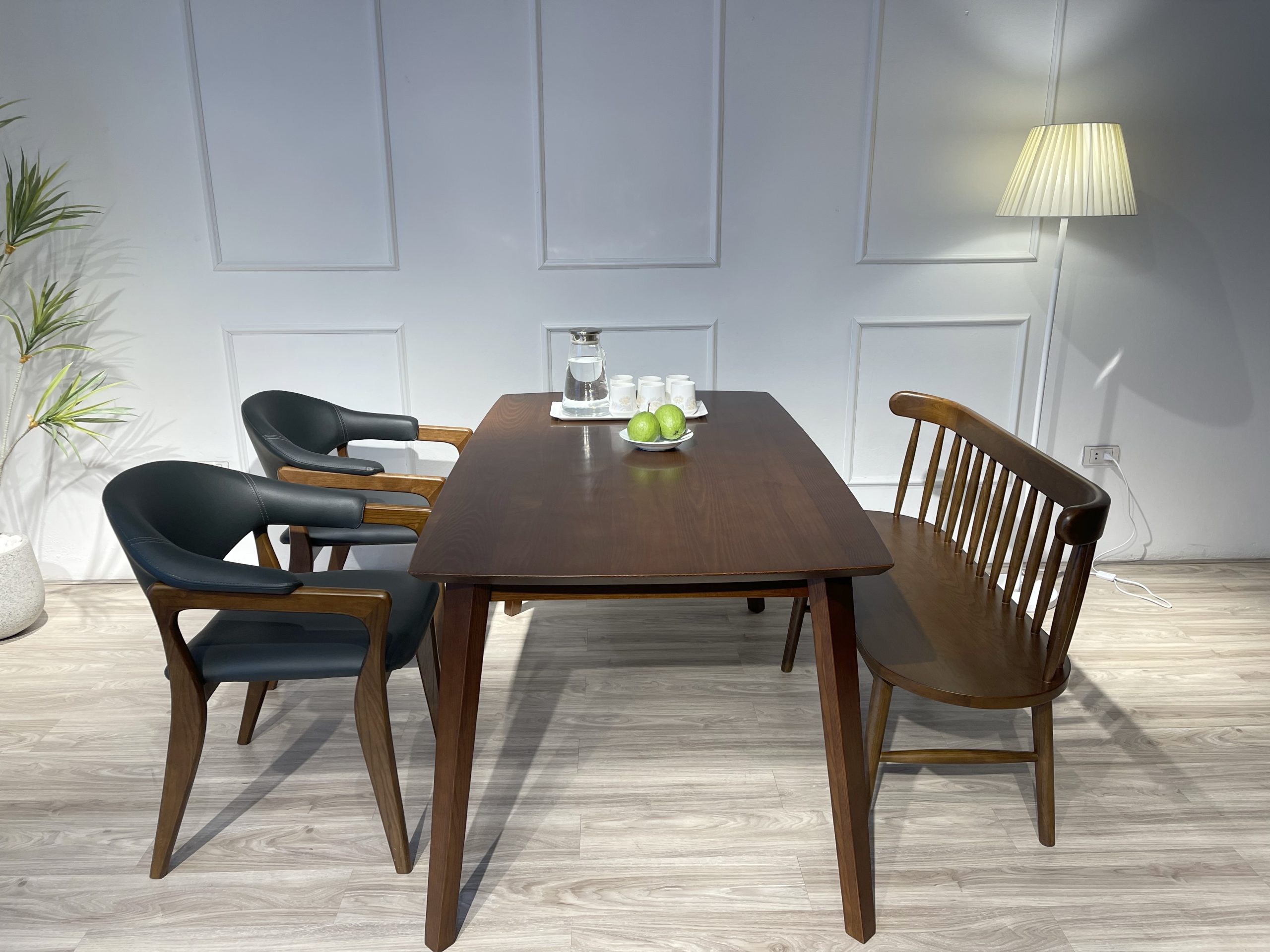 Sự kết hợp giữa băng ghế gỗ truyền thống và 2 ghế bọc da simili da cao cấp giúp bộ bàn ăn vừa có nét mộc mạc, vừa mang hơi thở hiện đại. Phù hợp với cả người lớn tuổi lẫn gia đình trẻ.