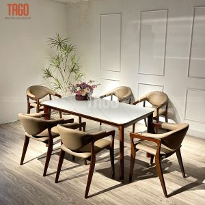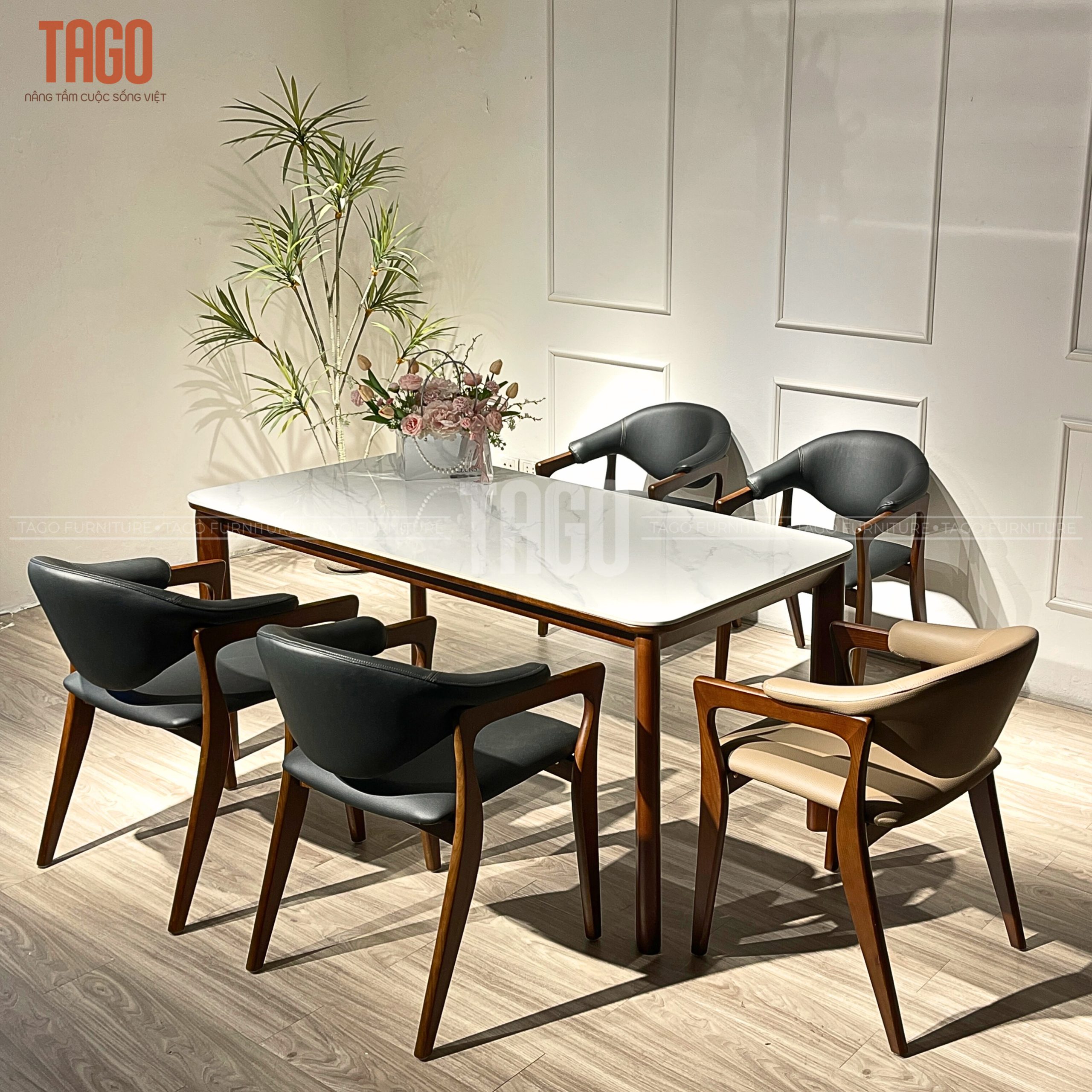 Bộ sản phẩm là lựa chọn cao cấp cho không gian phòng ăn hiện đại, kết hợp hài hòa giữa chất liệu tự nhiên và thiết kế tinh giản sang trọng.