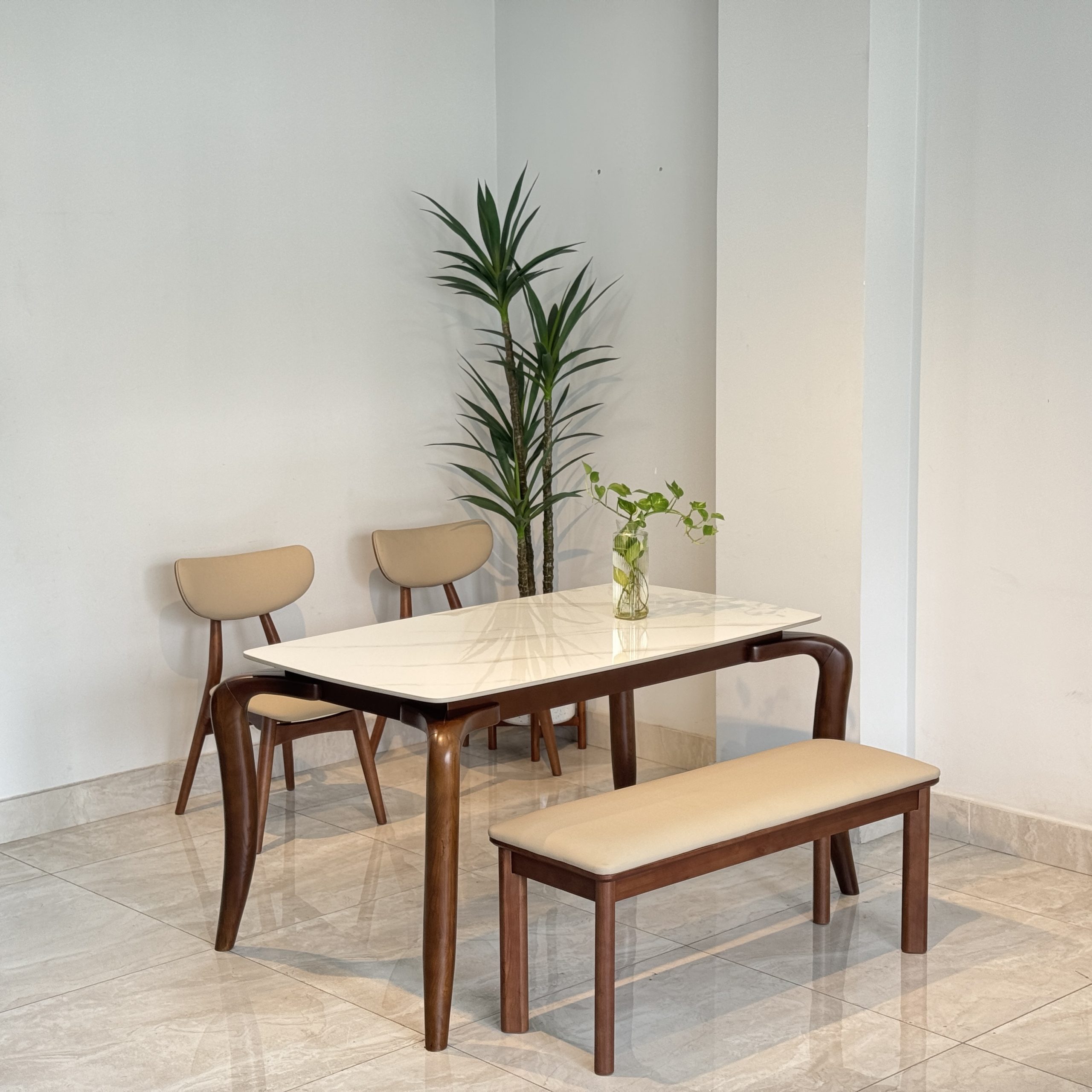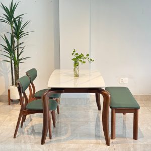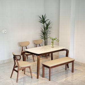Review Bộ Bàn Ăn TADI Mặt Đá 4 Ghế Phối Bench 1m1