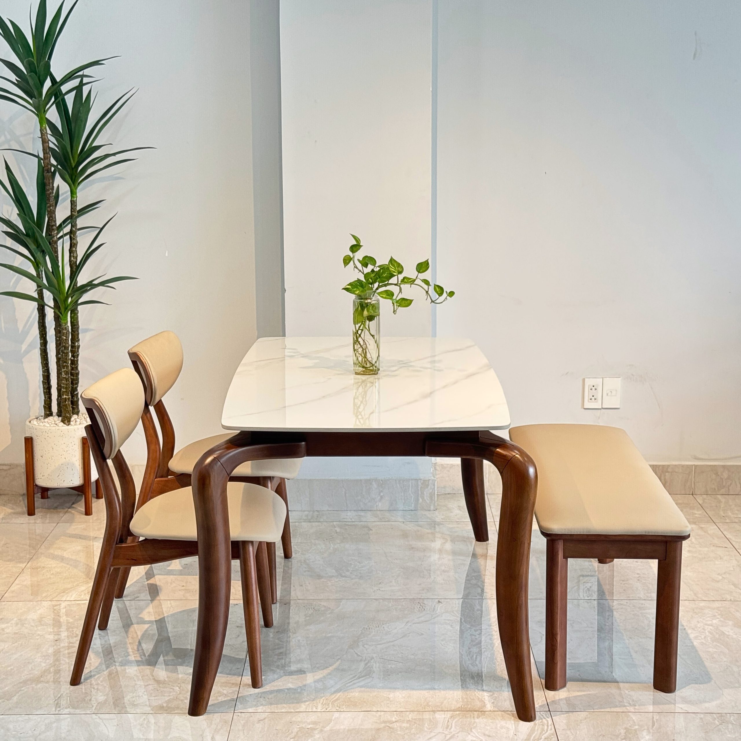 BỘ BÀN ĂN MẶT CERAMIC CAO CẤP KẾT HỢP GHẾ TADI GỖ TỰ NHIÊN – GIẢI PHÁP NỘI THẤT TINH GỌN & LÂU BỀN