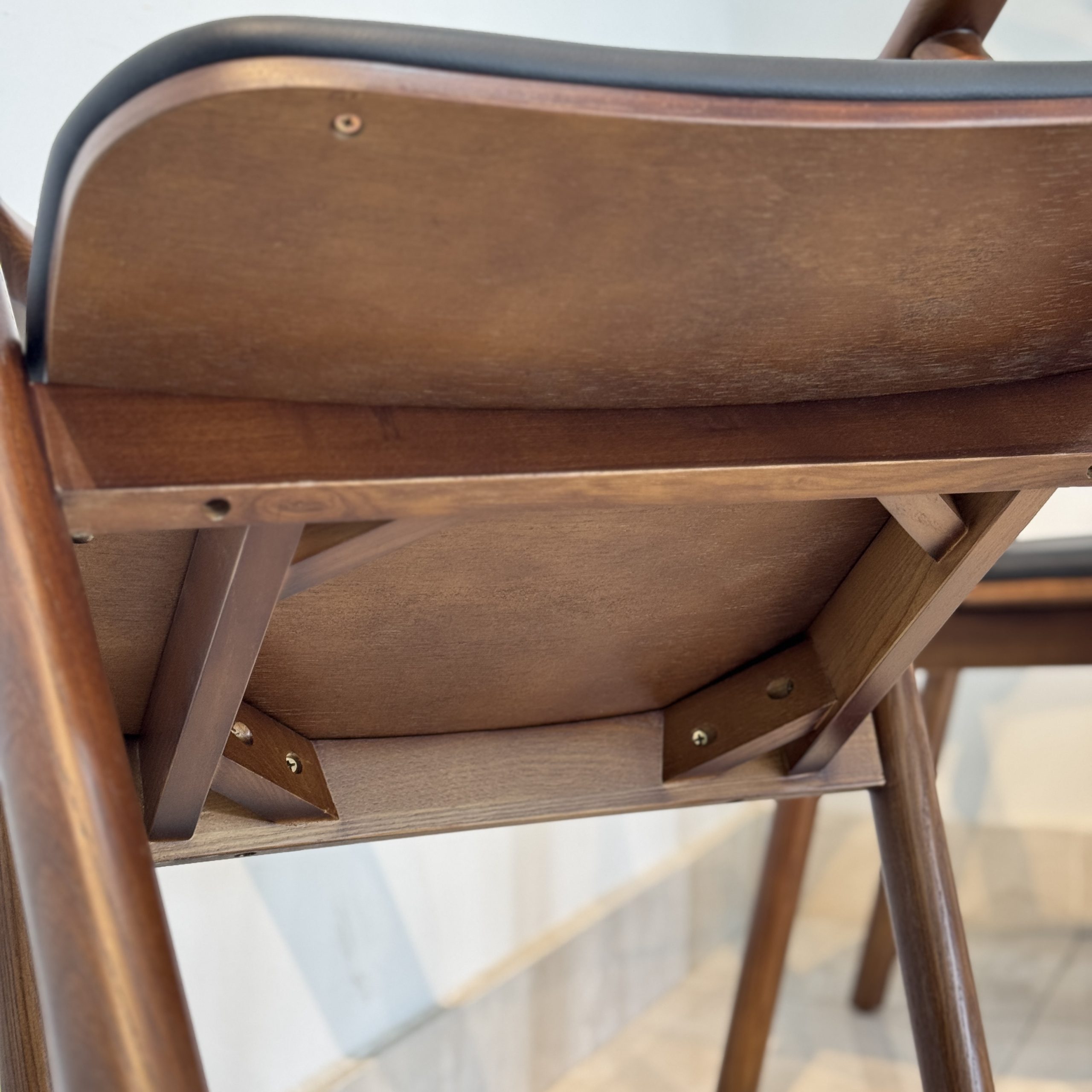 Chân ghế bo tròn và vát nhẹ, đảm bảo độ vững khi sử dụng.