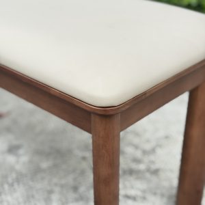 Toàn bộ phần khung của ghế được chế tác từ gỗ cao su tự nhiên đã qua xử lý sấy lò, độ ẩm đạt <12%, giúp hạn chế tối đa hiện tượng co ngót, nứt bề mặt hoặc cong vênh trong điều kiện nhiệt đới ẩm tại Việt Nam.