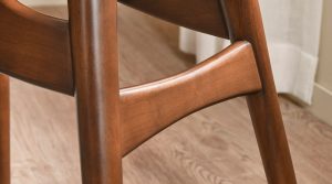 - Khung ghế làm từ gỗ tự nhiên, sử dụng công nghệ để tạo form cong liền khối – đảm bảo độ chắc chắn và tư thế ngồi ôm lưng dễ chịu.