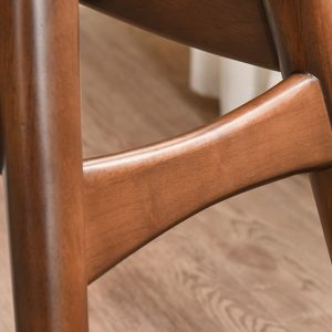 Toàn bộ phần khung của ghế được chế tác từ gỗ cao su tự nhiên đã qua xử lý sấy lò, độ ẩm đạt <12%, giúp hạn chế tối đa hiện tượng co ngót, nứt bề mặt hoặc cong vênh trong điều kiện nhiệt đới ẩm tại Việt Nam.