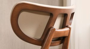 - Khung ghế làm từ gỗ tự nhiên, sử dụng công nghệ để tạo form cong liền khối – đảm bảo độ chắc chắn và tư thế ngồi ôm lưng dễ chịu.